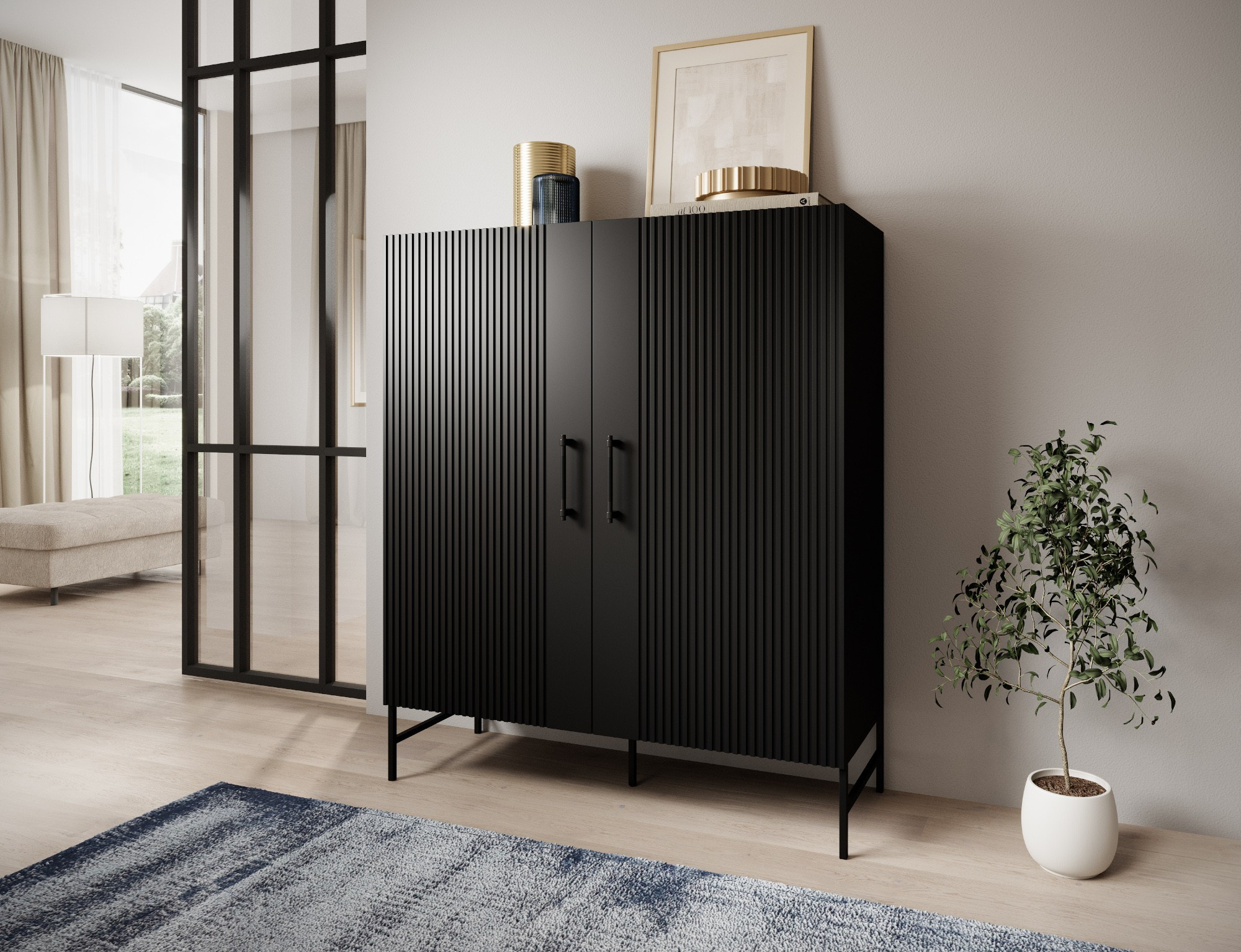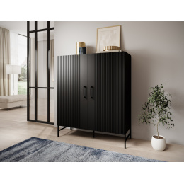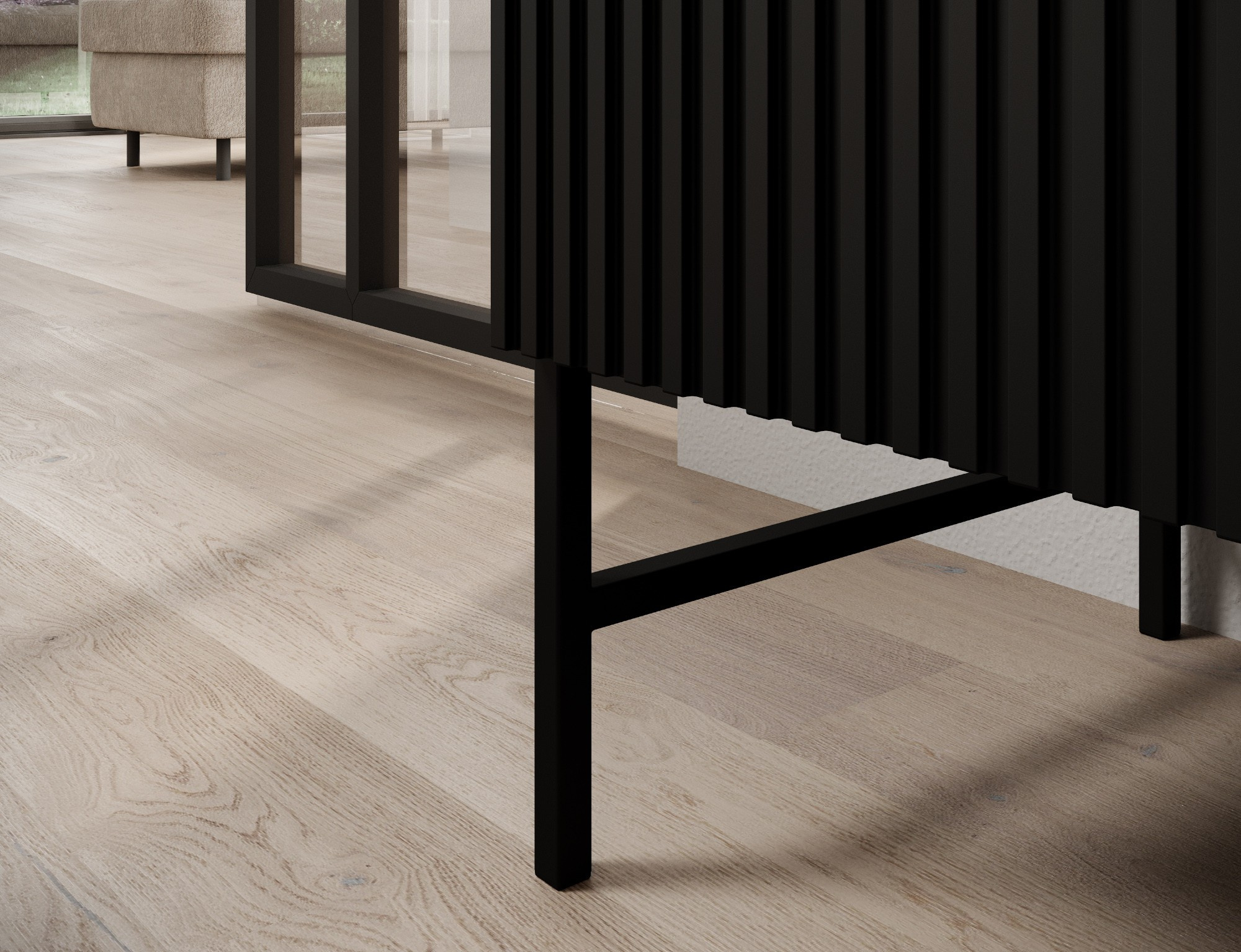 Vitrína z kolekce Raftt je dokonalou kombinací industriálního designu a funkčnosti, ideální pro moderní interiéry. Jeho pevná konstrukce je vyrobena z laminované dřevotřísky, s drážkovanými čely z fóliovaného MDF, které zdůrazňují loftový charakter kusu. Nábytek spočívá na černých kovových nohách, které jsou práškově lakované pro stabilitu a lehkost. Černé hliníkové úchyty krásně doplňují design, což vitríně dodává elegantní a minimalistický vzhled. Křídlové dveře jsou vybaveny panty s tichým dovíráním, což zajišťuje pohodlné a tiché používání. Navíc možnost připevnění na zeď zvyšuje bezpečnost. Vitrína Raftt je ideální pro podkrovní, industriální a moderní uspořádání, přidává styl a funkčnost prostoru.