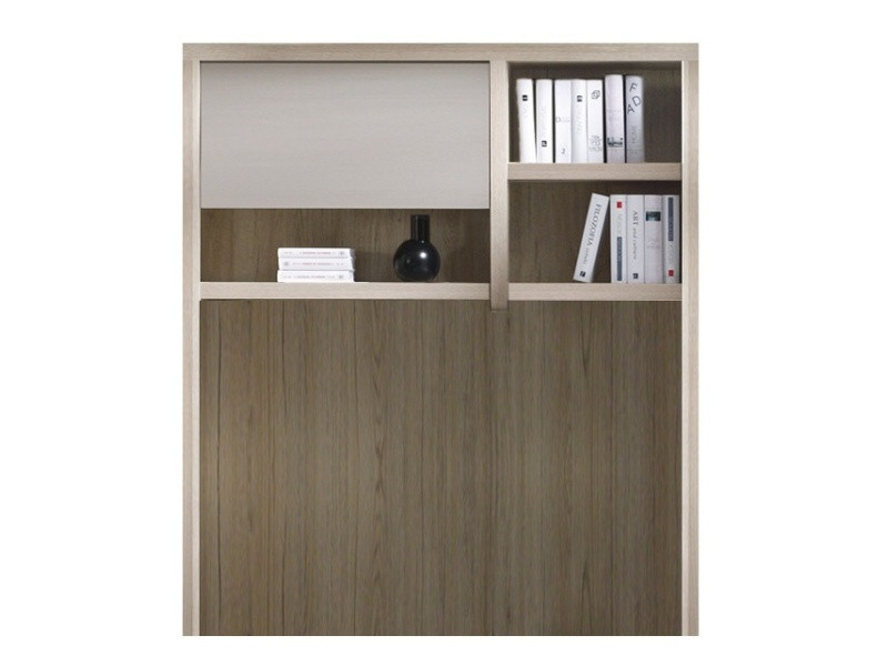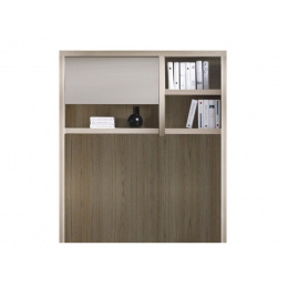 Systém ROMA je moderní nábytek vyrobený z laminované desky. Dostupná v barvách, jak je vidět na obrázku jasan s bílým leskem s šedými doplňky.