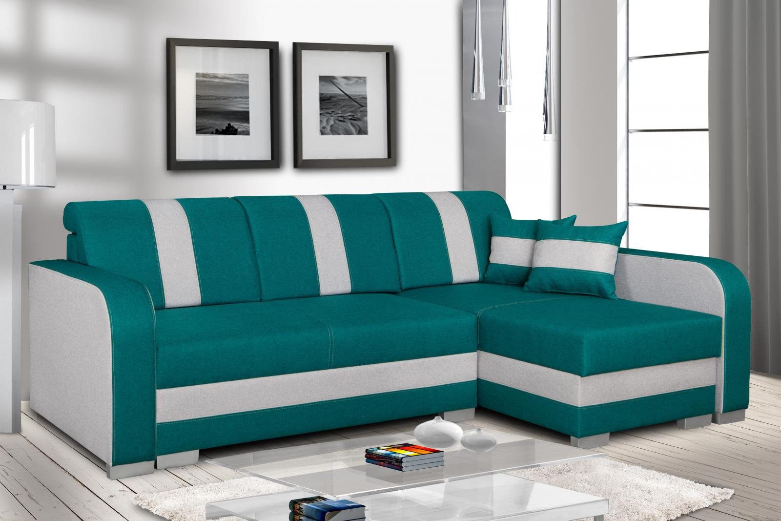 Rohová sedací souprava Costa P tyrkysová/šedá