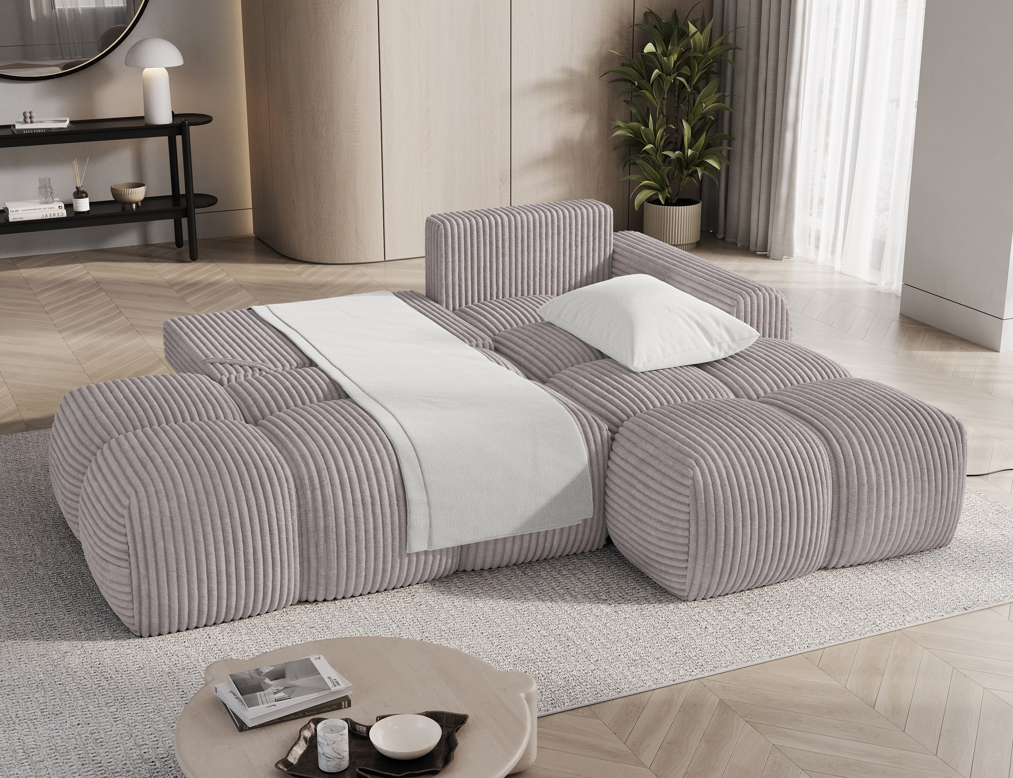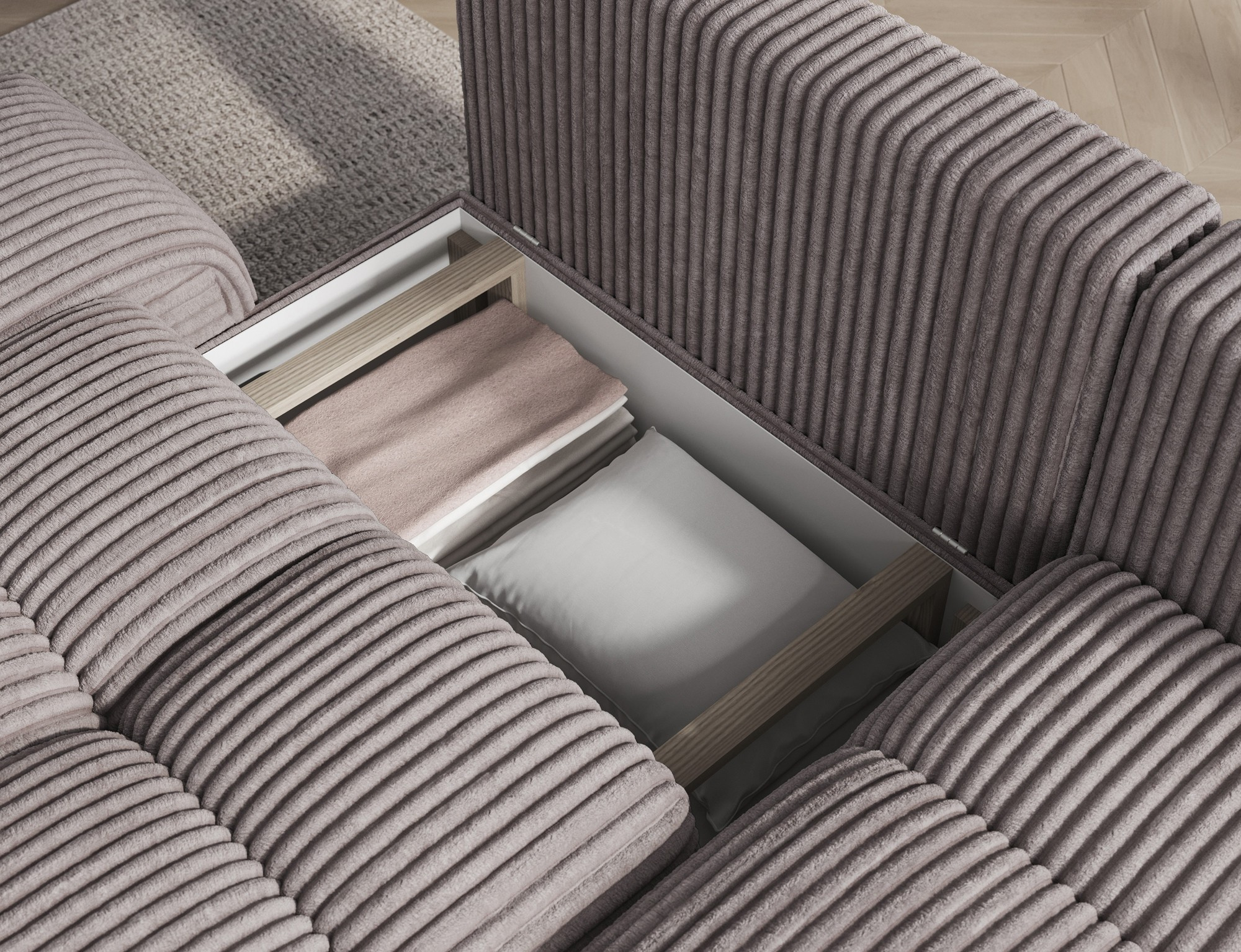 Tato sedací souprava je vybavena praktickým úložným prostorem, který vám umožní snadno uschovat deky, polštáře nebo jiné předměty, které chcete mít po ruce, ale zároveň je mít úhledně uklizené. Díky možnosti rozkládání se sedací souprava snadno promění v pohodlné lůžko s plochou na spaní o rozměrech 95 x 205 cm, což je ideální pro hosty nebo pro příležitostné přespání.