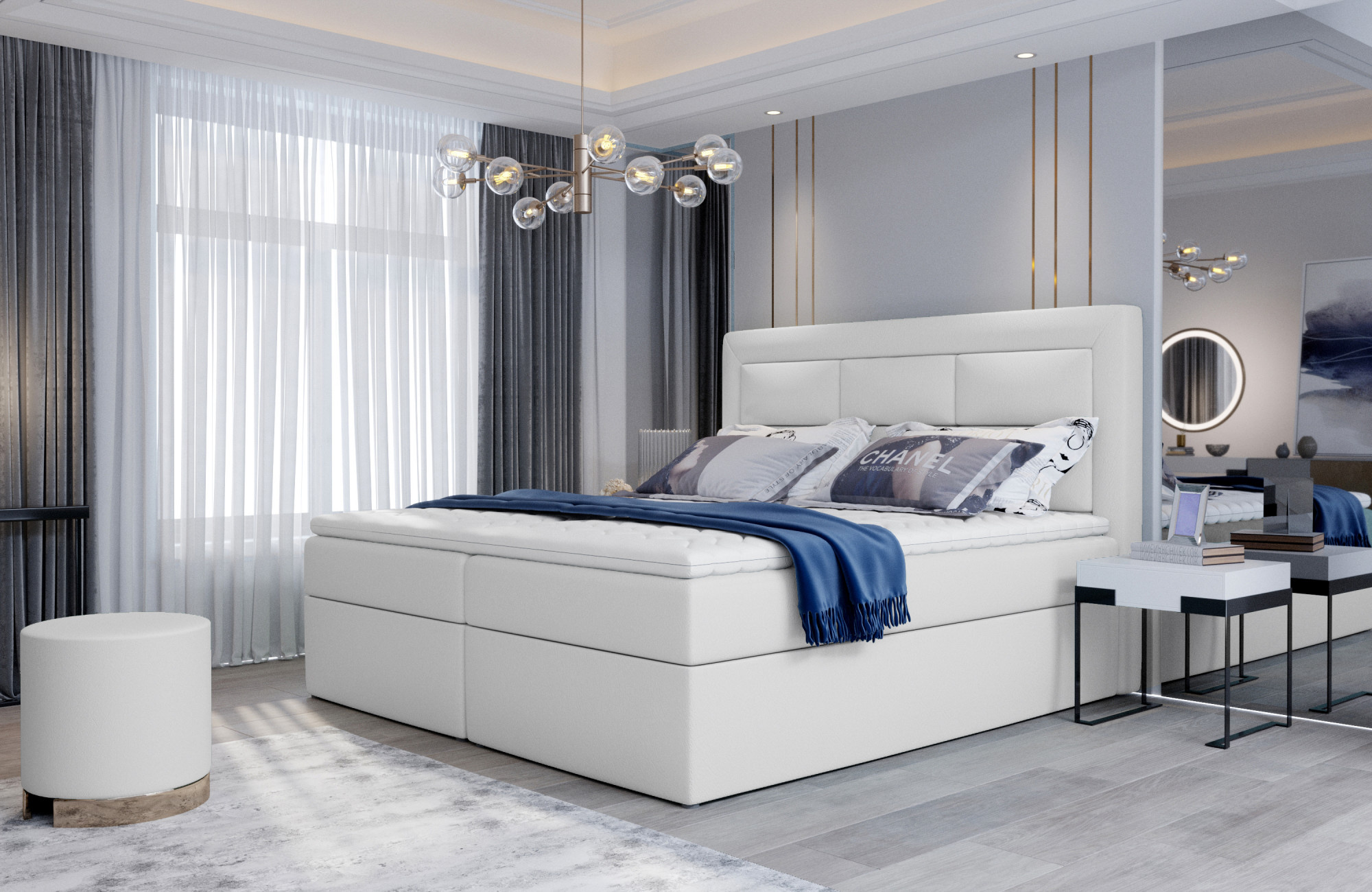 Vivre je jednoduchá a prostorná, přesto elegantní a velmi pohodlná kontinentální postel typu boxspring, která bude dokonalým zakončením každého moderního designu ložnice. Tento model, dostupný ve třech velikostech: 140/160/180 x 200 cm, je vybaven pevným bonellovým matrací a pěnou T25. Kromě toho stojí za to podívat se také na dva prostorné úložné boxy na lůžkoviny. Dalšími charakteristickými prvky postele Vivre jsou: módní prošívané opěradlo, vysoké sedadlo o výšce 53 centimetrů a malé nožky. Pokud máte zájem o pohodlnou a zároveň stylovou postel, ze které vstanete vždy tou správnou nohou díky maximálnímu pohodlí a funkčnosti, kterou nabízí - zveme vás, abyste se zajímali o naši Boxspring Vivre. Koneckonců, zdravý spánek je ta nejdůležitější věc.
