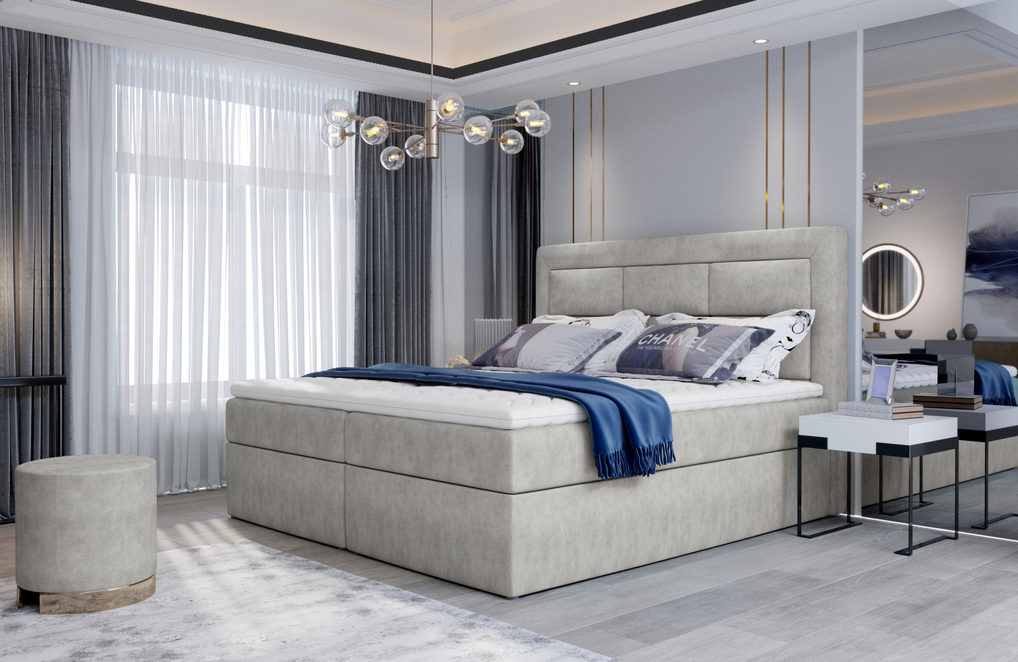 Vivre je jednoduchá a prostorná, přesto elegantní a velmi pohodlná kontinentální postel typu boxspring, která bude dokonalým zakončením každého moderního designu ložnice. Tento model, dostupný ve třech velikostech: 140/160/180 x 200 cm, je vybaven pevným bonellovým matrací a pěnou T25. Kromě toho stojí za to podívat se také na dva prostorné úložné boxy na lůžkoviny. Dalšími charakteristickými prvky postele Vivre jsou: módní prošívané opěradlo, vysoké sedadlo o výšce 53 centimetrů a malé nožky. Pokud máte zájem o pohodlnou a zároveň stylovou postel, ze které vstanete vždy tou správnou nohou díky maximálnímu pohodlí a funkčnosti, kterou nabízí - zveme vás, abyste se zajímali o naši Boxspring Vivre. Koneckonců, zdravý spánek je ta nejdůležitější věc.