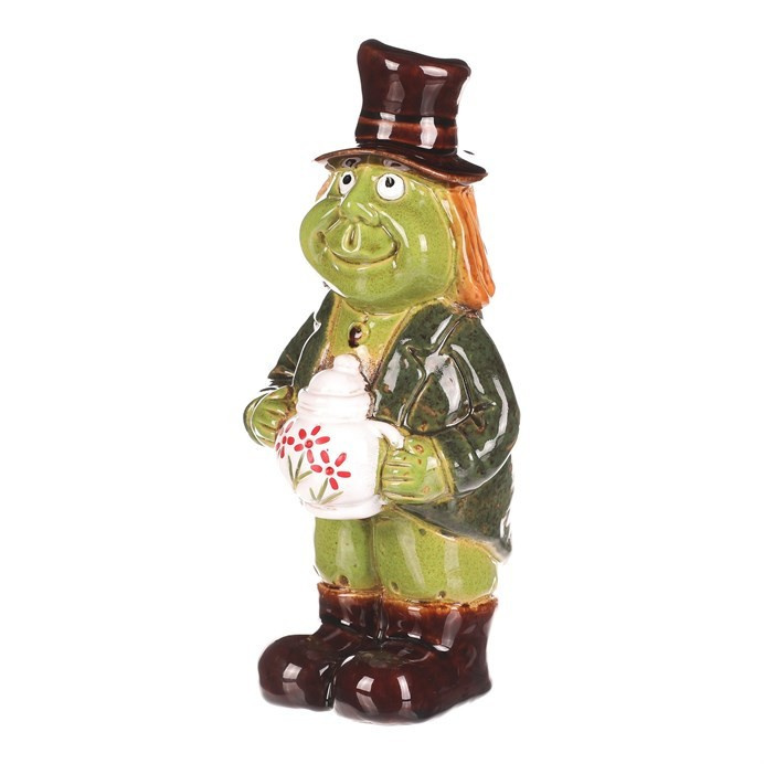 Tato keramická figurka vodníka s malovanou konvičkou plnou květin je krásným doplňkem pro vaši zahradu. Vodník v slušivém klobouku přináší do prostoru hravou atmosféru a jemně ladí s přírodním prostředím. Skvělý k rybníčku, mezi záhony nebo na jiná dobře viditelná místa, kde oživí každý kout vaší zahrady.