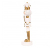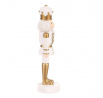 Figurka vojáka ve své bílo-zlaté uniformě, určena na postavení, vám přinese do domova neotřelou vánoční atmosféru plnou elegance a šarmu. Jeho půvabná postava stojící v pozoru na kulatém stupínku okouzlí každého pozorovatele a dodá vašemu prostoru jedinečný a nadčasový vzhled. Zlaté detaily, jako jsou boty, knoflíky a spodní část klobouku, nejenže podtrhují jeho noblesu, ale také dodávají této figurce zvláštní punc, kterým zaujme a obohatí váš vánoční interiér. Buďte nápadití a prokažte své originální myšlenky v praxi a nechte vystavit obdivu tuto nádhernou figurku vojáka, která upoutá zraky všech návštěvníků.