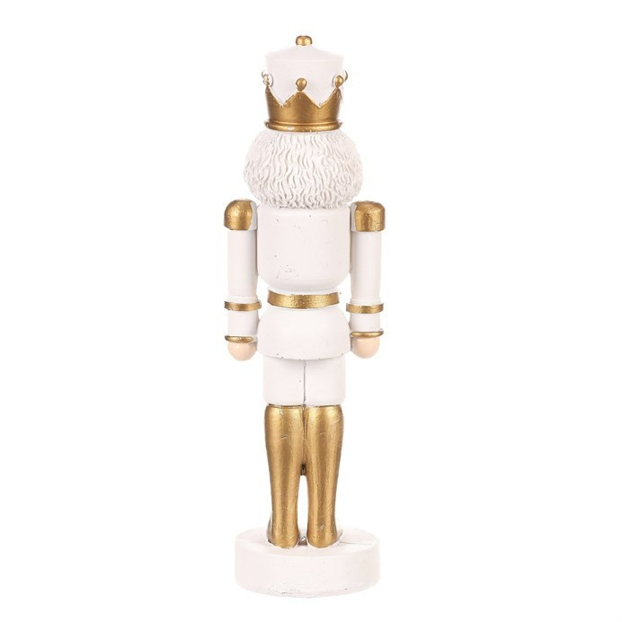 Figurka vojáka ve své bílo-zlaté uniformě, určena na postavení, vám přinese do domova neotřelou vánoční atmosféru plnou elegance a šarmu. Jeho půvabná postava stojící v pozoru na kulatém stupínku okouzlí každého pozorovatele a dodá vašemu prostoru jedinečný a nadčasový vzhled. Zlaté detaily, jako jsou boty, knoflíky a spodní část klobouku, nejenže podtrhují jeho noblesu, ale také dodávají této figurce zvláštní punc, kterým zaujme a obohatí váš vánoční interiér. Buďte nápadití a prokažte své originální myšlenky v praxi a nechte vystavit obdivu tuto nádhernou figurku vojáka, která upoutá zraky všech návštěvníků.