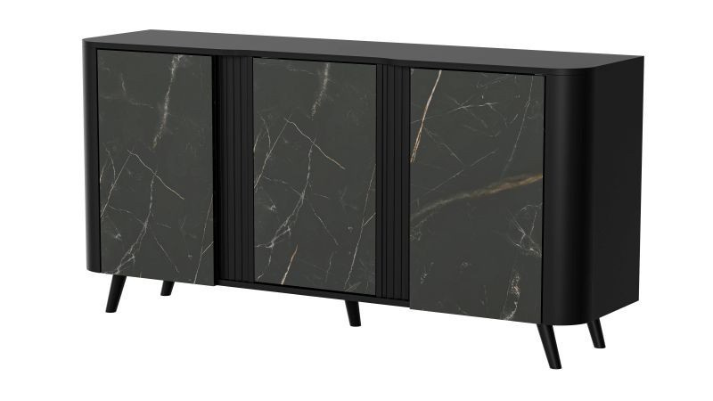 Tv komoda VOLARE 150 3D, černý mat/ černý san sebastian