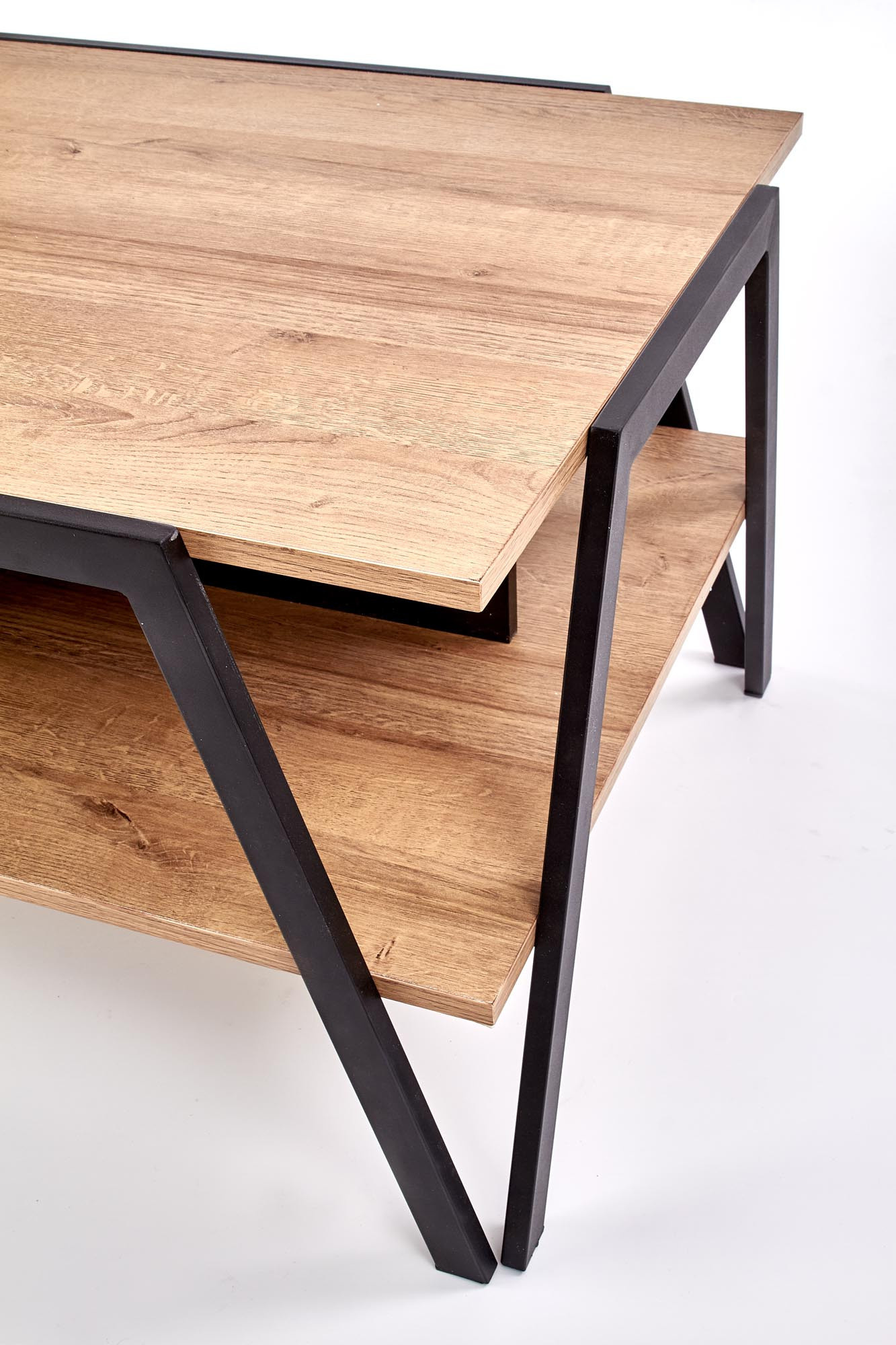 Vneste do svého obývacího pokoje nádech elegance a moderního designu s konferenčním stolem VOLTA. Tento stylový kus nábytku je ideální volbou pro ty, kteří hledají spojení funkčnosti a estetiky. S jeho sofistikovaným vzhledem v kombinaci černé a zlatého dubu se stane středobodem každého interiéru.