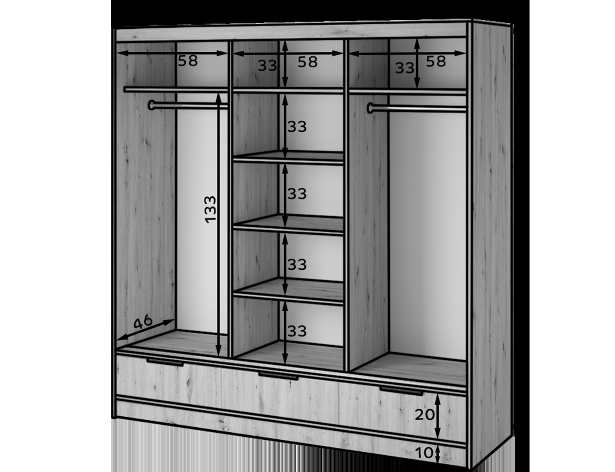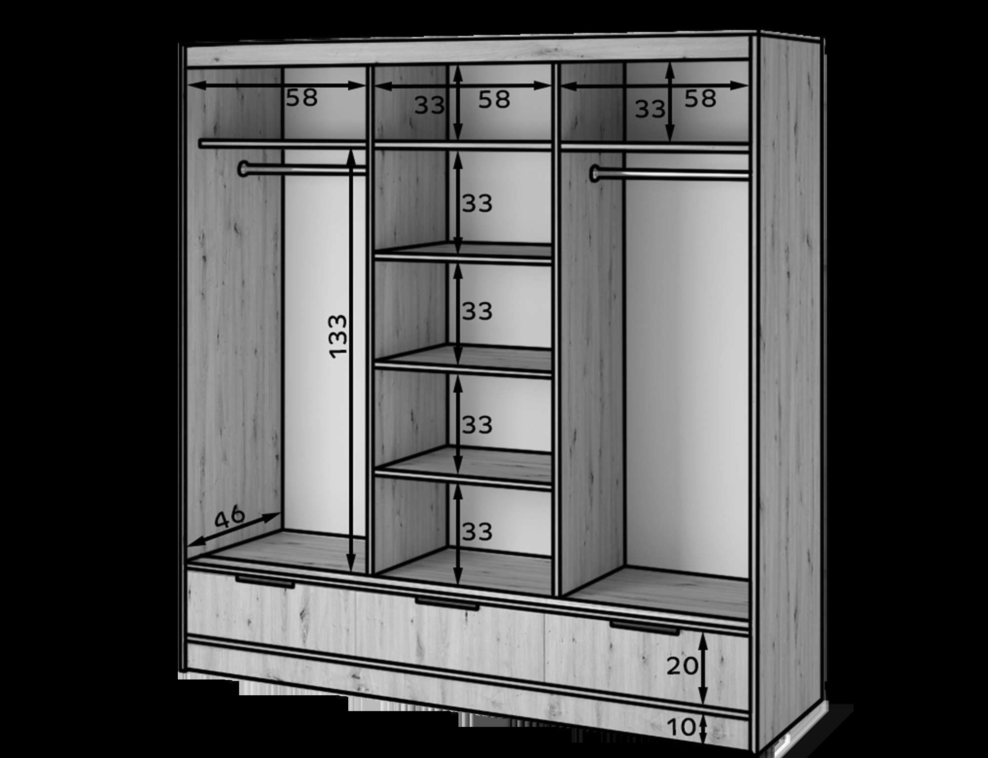 Šatní skříň Voodi III, Dub Artisan
