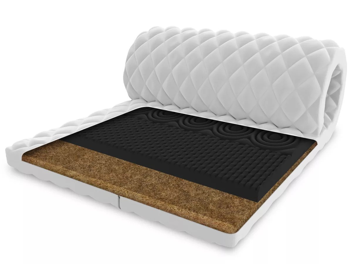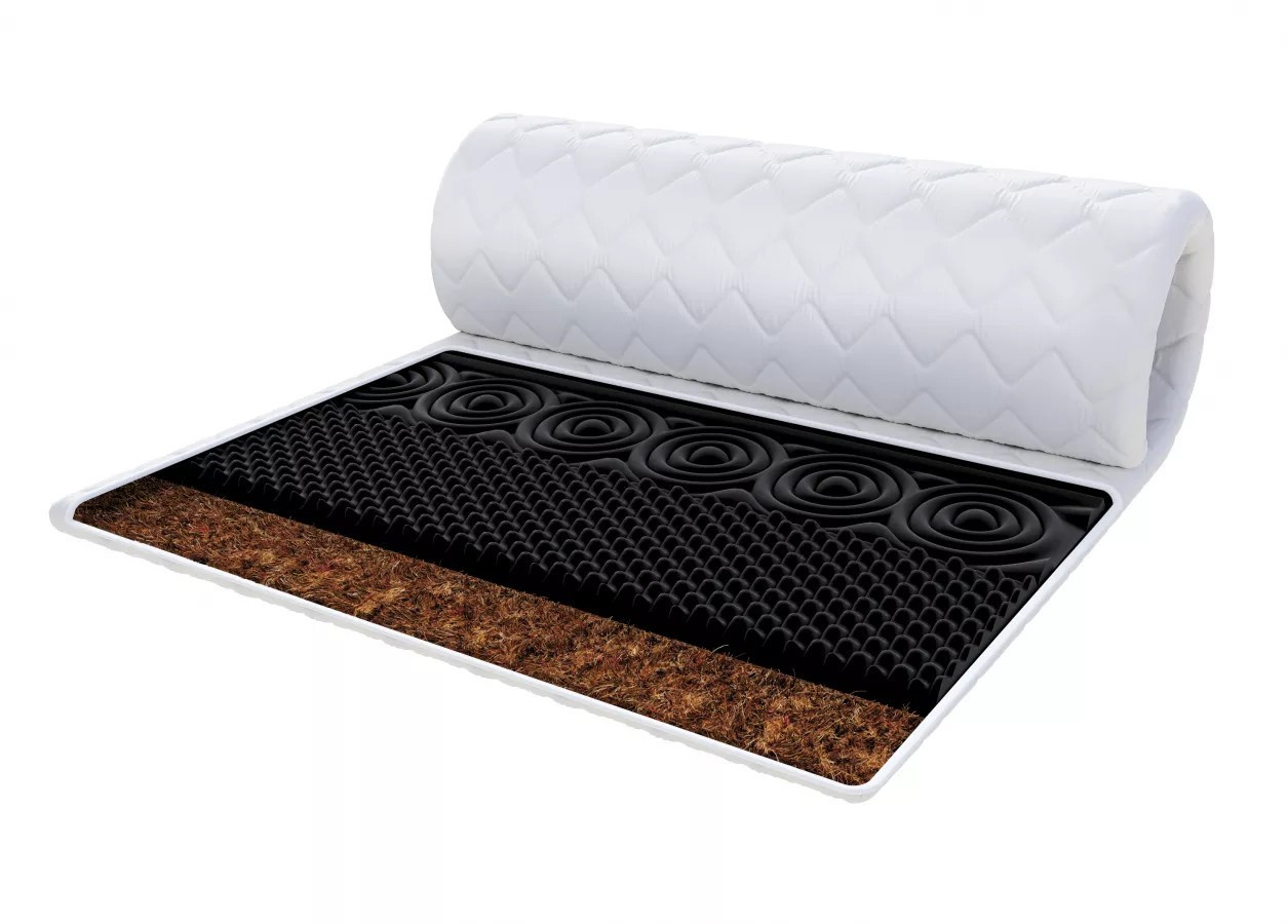 Vrchní matrace NERO s kokosovou profilovanou 7zónovou vysoce elastickou pěnou HR H30: profilovaný povrch rozděluje matraci do 7 zón, takže se pěna dokonale přizpůsobí tvaru těla. Má nestejnoměrnou buněčnou strukturu, a proto dosahuje lepších parametrů pohodlí a pružnosti. Tento materiál se vyznačuje mimořádnou trvanlivostí a odolností proti deformaci. Navíc získává svůj původní tvar dvakrát rychleji než standardní polyuretanová pěna. To znamená, že profilovaná HR pěna rychleji reaguje na změny polohy těla během spánku. Druhá vrstva je vyrobena z latexovaného kokosu. Jedná se o přírodní surovinu, která se vyrábí z vláken kokosových skořápek s přídavkem latexu. Kokosová vlákna jsou lehká, vzdušná a odolná vůči vlhkosti. Tvoří neproniknutelnou bariéru pro roztoče a všechny ostatní mikroorganismy. Kokos nezpůsobuje alergické reakce a nedráždí dýchací cesty. Snižuje také sekreci potu. Antialergický prošívaný potah Premium 200 g/m² s membránovou strukturou je vyroben z nejkvalitnějších prvotřídních hypoalergenních materiálů, které zajišťují výjimečnou měkkost, svěžest a mimořádné pohodlí a spokojenost s jeho používáním. Zabraňuje pronikání nečistot do matrace, chrání před pronikáním bakterií, hub, plísní a roztočů. Potah je opatřen všitým zipem, který umožňuje jeho snadné sejmutí pro praní. výhody matrace NERO s kokosem: pod vlivem tlaku těla se dokonale přizpůsobí tvaru a siluetě uživatele. Zmírňuje tlak v oblasti kyčlí a krku. Odnímatelný potah - zapínání na zip. Masážní efekt Certifikát Oeko-TEX Specifikace: tvrdost: H3 středně tvrdá, tloušťka: 6 cm. Složení: HR pěna H30: 4 cm, kokosová vložka: 1 cm, potah: 1 cm.