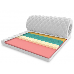 Topper je vyroben ze speciální termoplastické pěny VISCO, která reaguje na tlak a teplotu těla a poskytuje ideální oporu jednotlivým částem těla. Krycí matrace se optimálně přizpůsobí postavě uživatele. Díky svým ortopedickým vlastnostem zmírňuje případný tlak v oblasti kyčlí nebo krku, což je velmi dobré při problémech s krevním oběhem. Profilovaná 7-zónová vysoce pružná pěna HR H30. Profilovaný povrch rozděluje matraci do 7 zón, díky čemuž se matrace dokonale přizpůsobí tvaru těla. Má nestejnoměrnou buněčnou strukturu a proto dosahuje lepších parametrů pohodlí a pružnosti. Tento materiál se vyznačuje mimořádnou trvanlivostí a odolností proti deformaci. Navíc získává svůj původní tvar dvakrát rychleji než standardní polyuretanová pěna. To znamená, že profilovaná HR pěna rychleji reaguje na změny polohy těla během spánku. Antialergický prošívaný potah Premium 200 g/m² s membránovou strukturou je vyroben z nejkvalitnějších prvotřídních hypoalergenních materiálů, které zajišťují výjimečnou měkkost, svěžest a mimořádné pohodlí a spokojenost s jeho používáním. Zabraňuje pronikání nečistot do matrace, chrání před pronikáním bakterií, hub, plísní a roztočů. Potah je opatřen všitým zipem, který umožňuje jeho snadné sejmutí pro praní.
