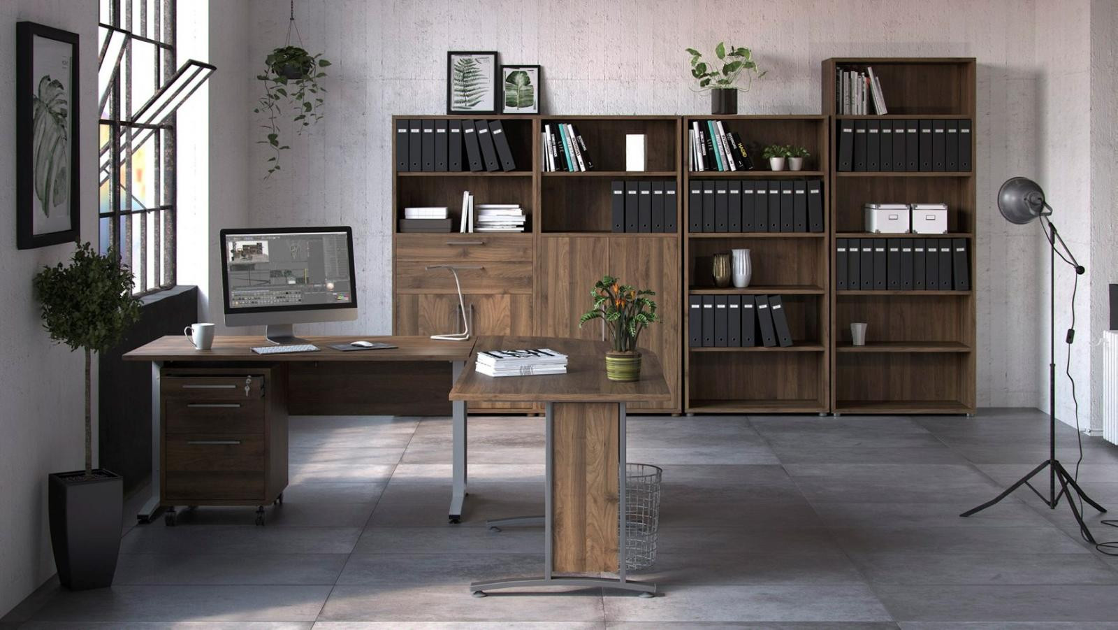 Potřebujete zařídit kancelář nebo domácí pracovnu? Kolekce kancelářského nábytku Office, Vám díky rozmanitosti prvků a dekorů, nabízí širokou škálu možností, jak si svůj pracovní prostor vybavit tak, aby byl účelný a praktický. Modelová řada Office je vyrobena z lamina v jednoduchém designu, takže Váš pracovní prostor bude působit vzdušně a Vy se v něm budete cítit příjemně. Všechny prvky sestavy Office jsou vyrobeny z lamina, které je odolné a snadné na údržbu. Při výrobě je kladen důraz na ekologii takže je nábytek vyráběný v souladu s ohledy na životní prostředí. Kolekce nábytku Office obsahuje vše, co budete v kanceláři i pracovně potřebovat a díky variabilním možnostem sestavení, si s ním můžete vybavit kancelář jakékoliv velikosti. Vše můžete přizpůsobit svému prostoru a svým potřebám. Psací stoly můžou být rovné, rohové, nebo také do tvaru U. Regály můžou být samostatné, nebo můžete kombinovat s dveřmi či zásuvkami. Pro inspiraci, jsou na doplňkových fotografiích vyobrazeny místnosti, které jsou tímto nábytkem vybaveny.