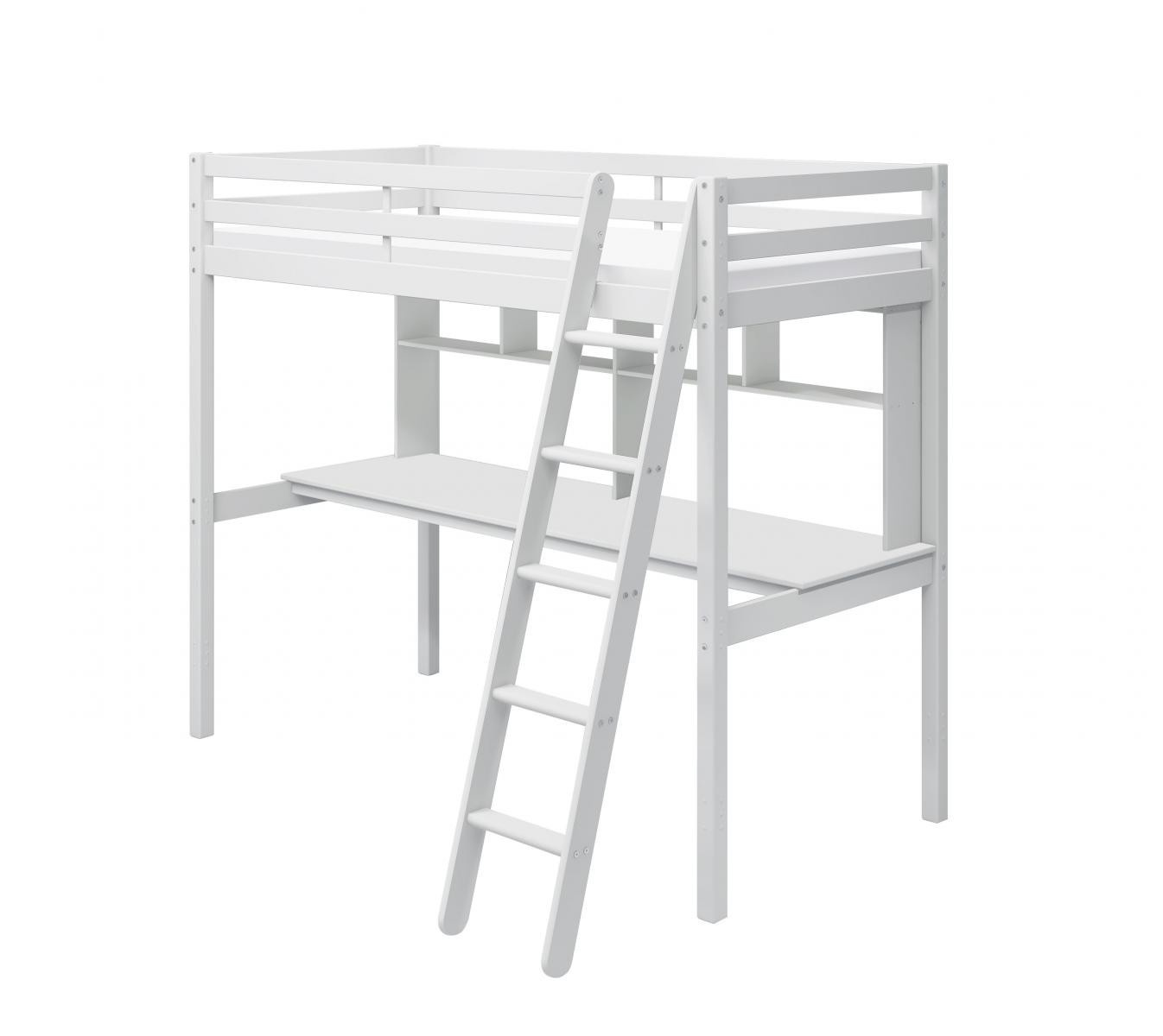 Vysoká postel s pracovní deskou a policemi Actim bílá