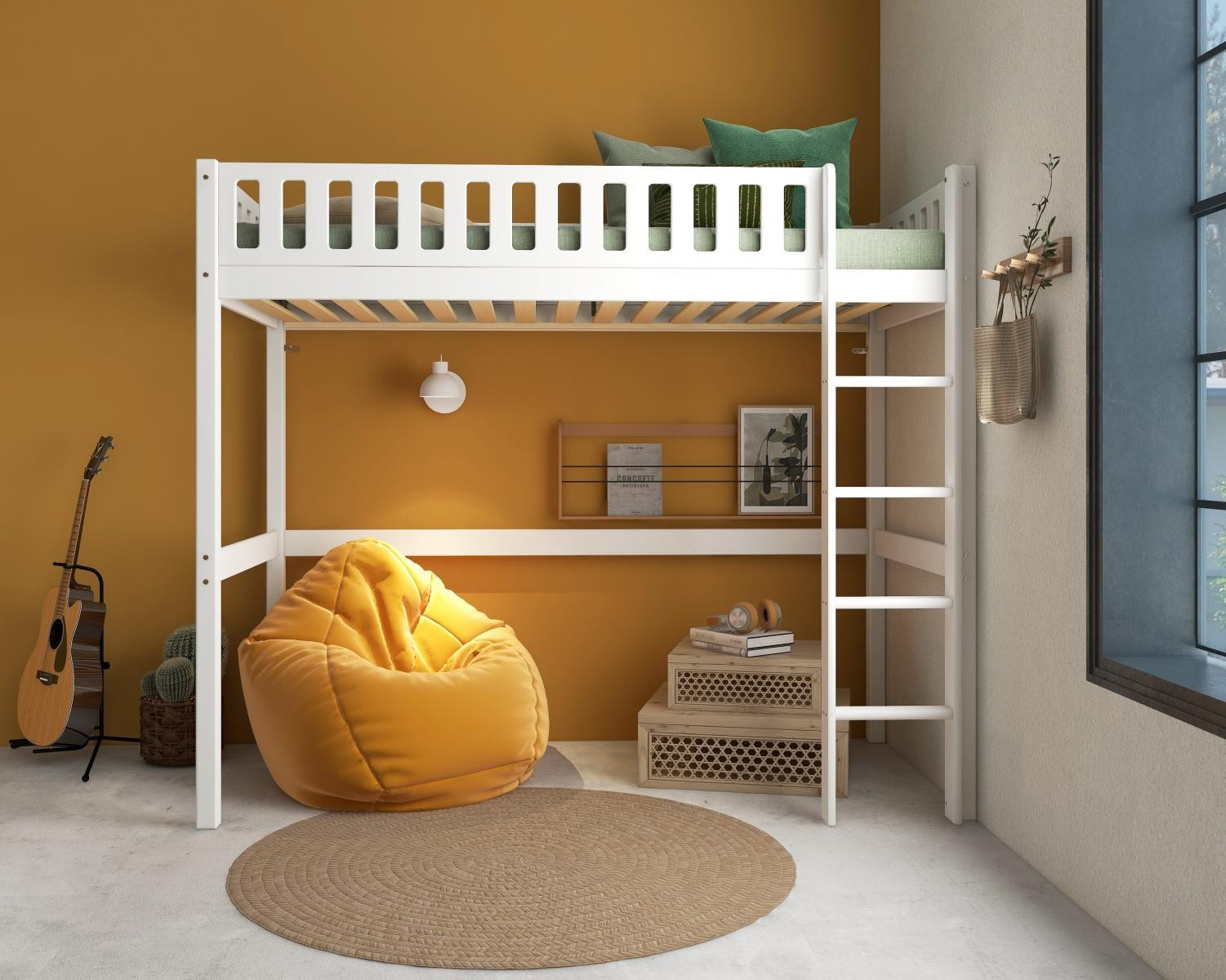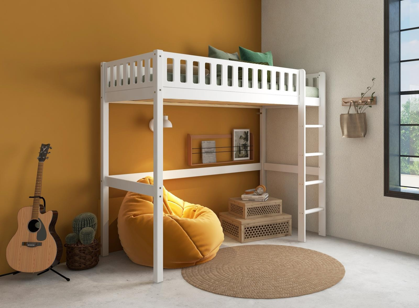 Vysoká postel Viggo je fantastickým řešením pro maximální využití prostoru v menším dětském pokoji. Využijte extra prostor pro studium, odpočinek nebo pro všechno to oblečení - nekonečné možnosti.