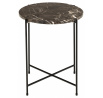 Konferenční stolek Avila je malý, elegantní kus nábytku ideální do obývacího pokoje ve stylu glamour. Má kulatou desku z hnědého mramoru a práškově lakovanou základnu složenou ze čtyř nohou v černé barvě. Nohy stolku jsou zajištěny plastovými krytkami a dodatečně spojeny dvěma křížícími se prvky. Celkově působí velmi lehce a jemně, avšak díky vhodné konstrukci je stolek plně stabilní. Díky elegantnímu designu se stolek Avila může úspěšně stát ozdobou vašeho interiéru. Stolek s deskou z hnědého mramoru se hodí do každého obývacího pokoje. Žíly různých odstínů, které probíhají skrz leštěný kámen, činí ze stolku mistrovské dílo, protože neexistují dva stejné – díky laskavosti přírody. Počet kartonů: 1 Rozměry kartonů: 45x7x47cm Hmotnost kartonů: 7,5kg