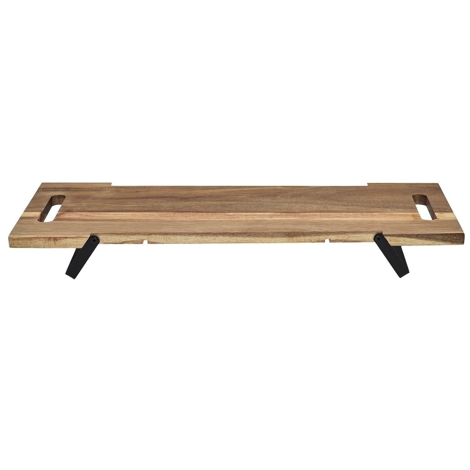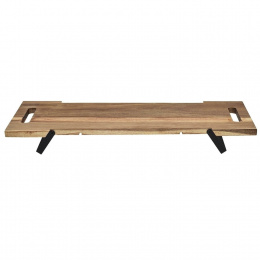 Elegantní výstavní deska o délce 55 cm, vyrobená z vysoce kvalitního akáciového dřeva a kovového podstavce z železa. Její solidní konstrukce s výškou 7 cm a hloubkou 18 cm zajišťuje stabilitu a funkčnost. Přírodní povrchová úprava akátového dřeva a moderní kovová základna dodávají eleganci a styl každému interiéru. Ideální pro prezentaci dekorací, rostlin, knih nebo jiných předmětů, deska přináší moderní prvek do domu, kanceláře nebo obchodu, spojující estetiku s odolností.