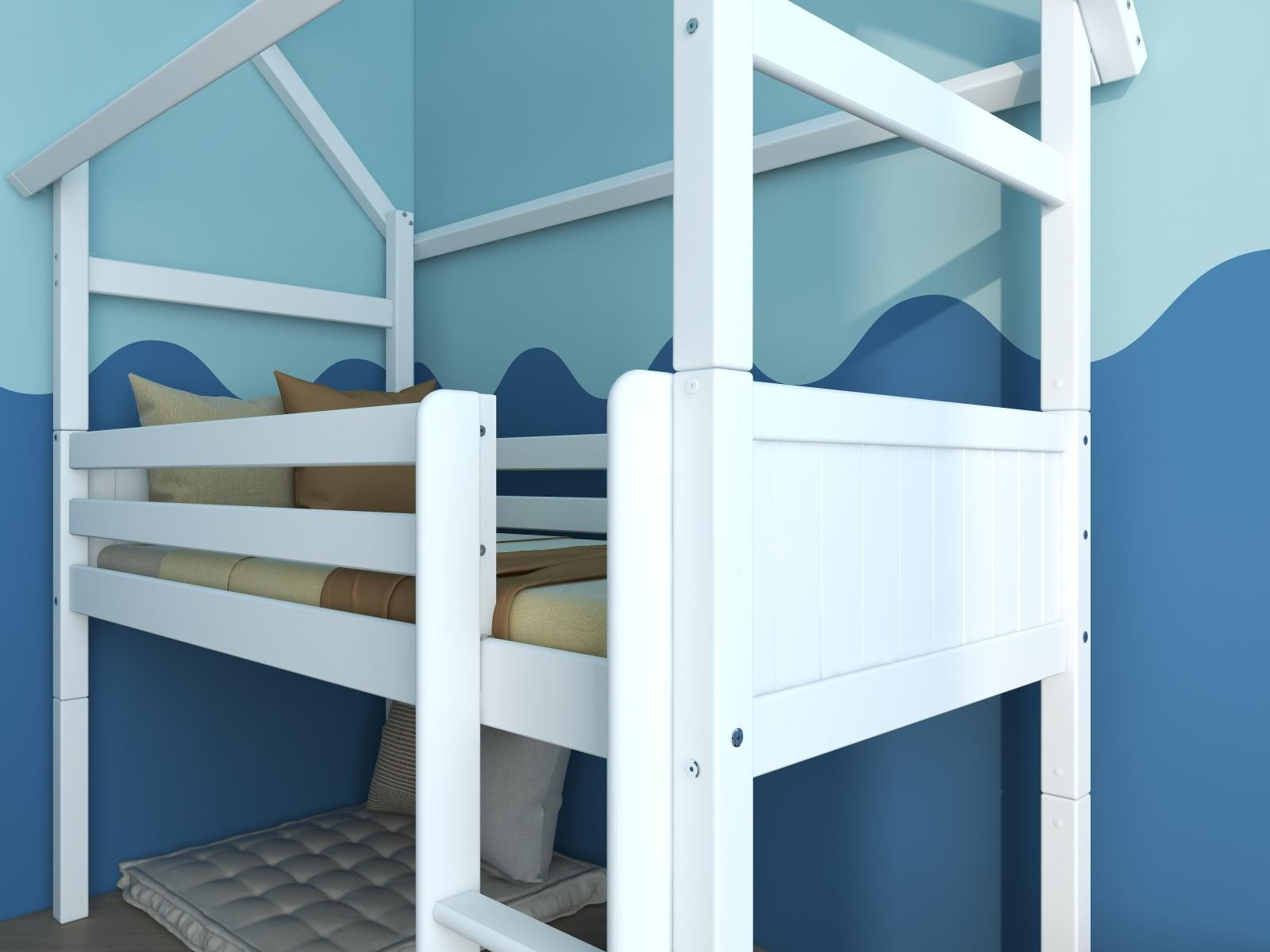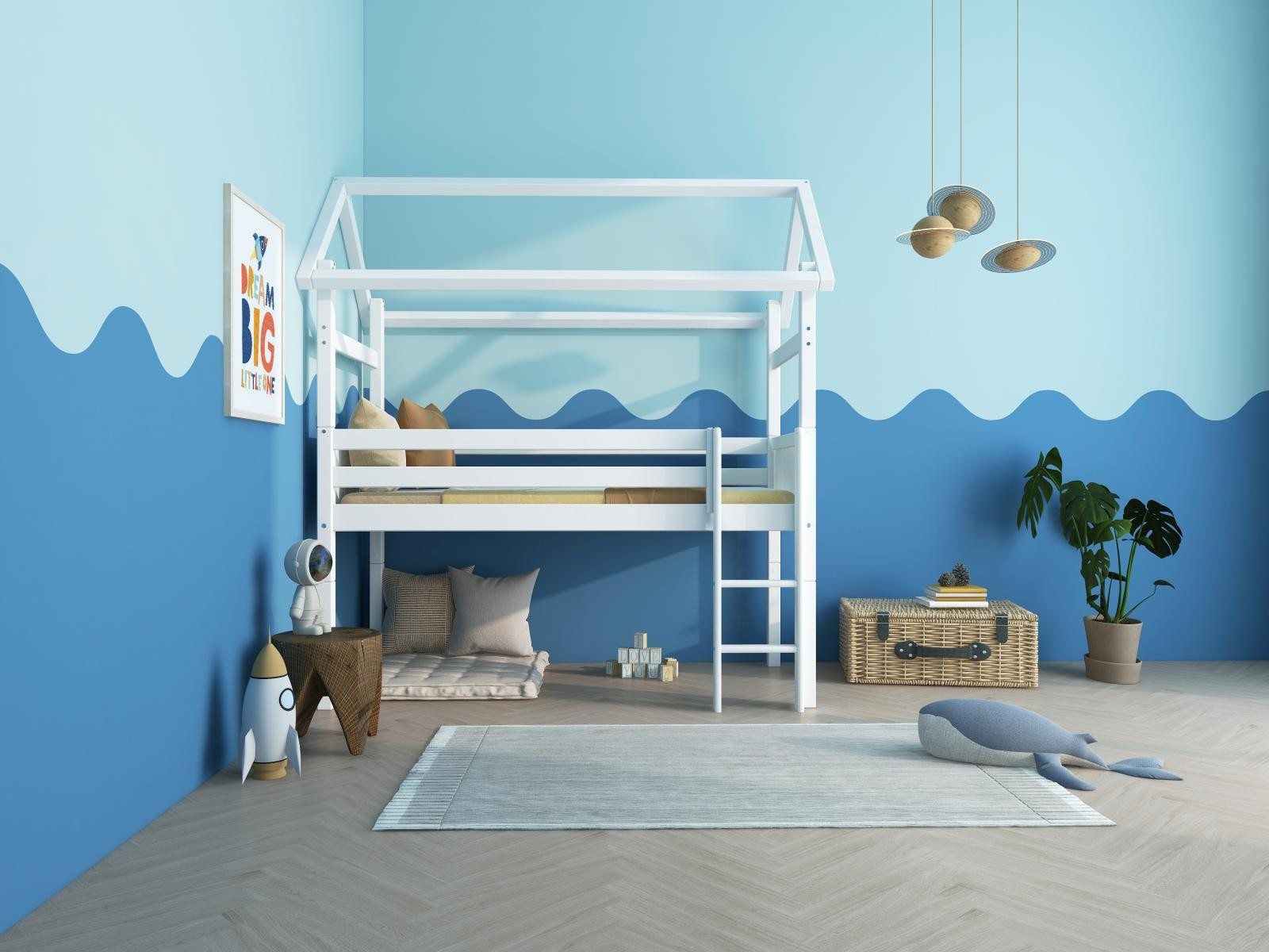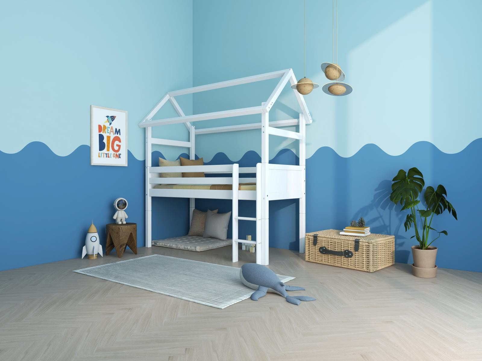 Vyvýšená postel domeček s atraktivními detaily dodá dětskému pokoji okouzlující a hravou atmosféru. Tato postel je dokonalým způsobem, jak vytvořit klidný a zároveň zábavný prostor, díky kterému bude pokoj vašeho dítěte výjimečný. Poskytuje maximální flexibilitu - později lze použít jako klasickou postel.
