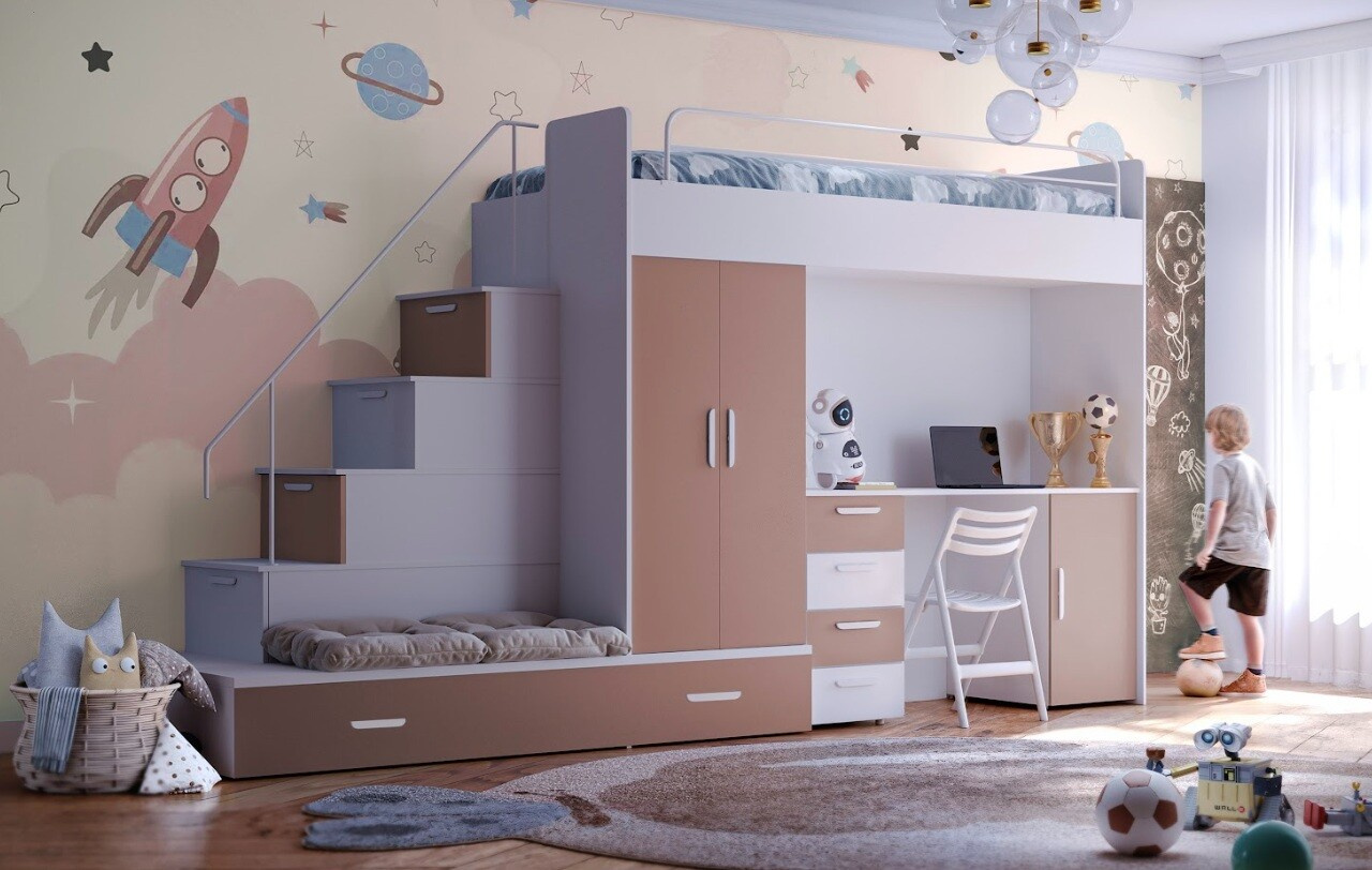 Objevte dokonalou kombinaci stylu, funkčnosti a bezpečnosti s naší moderní dětskou postelí, která je navržena tak, aby splnila všechny potřeby vašeho dítěte. Tato postel je ideální volbou pro ty, kteří hledají nejen pohodlné místo na spaní, ale také praktické řešení pro úložné prostory a pracovní plochu.