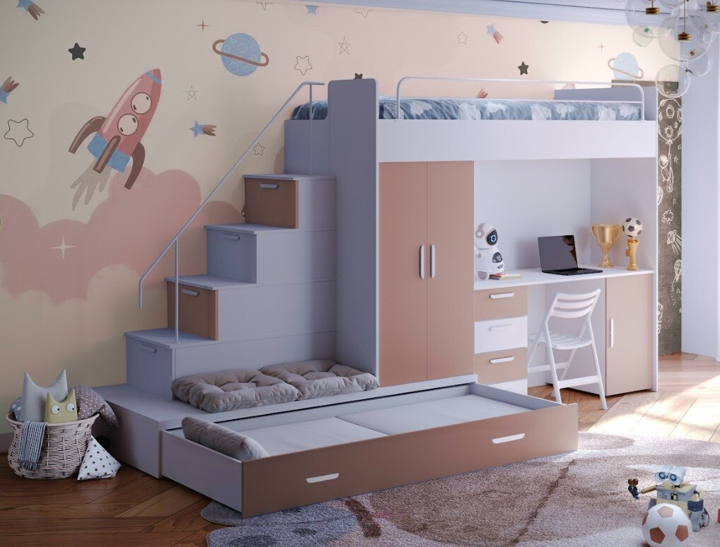 Vytvořte svému dítěti útulný a praktický prostor s naší multifunkční postelí, která nabízí nejen pohodlí, ale také dostatek úložného prostoru a pracovní plochu pro každodenní aktivity.