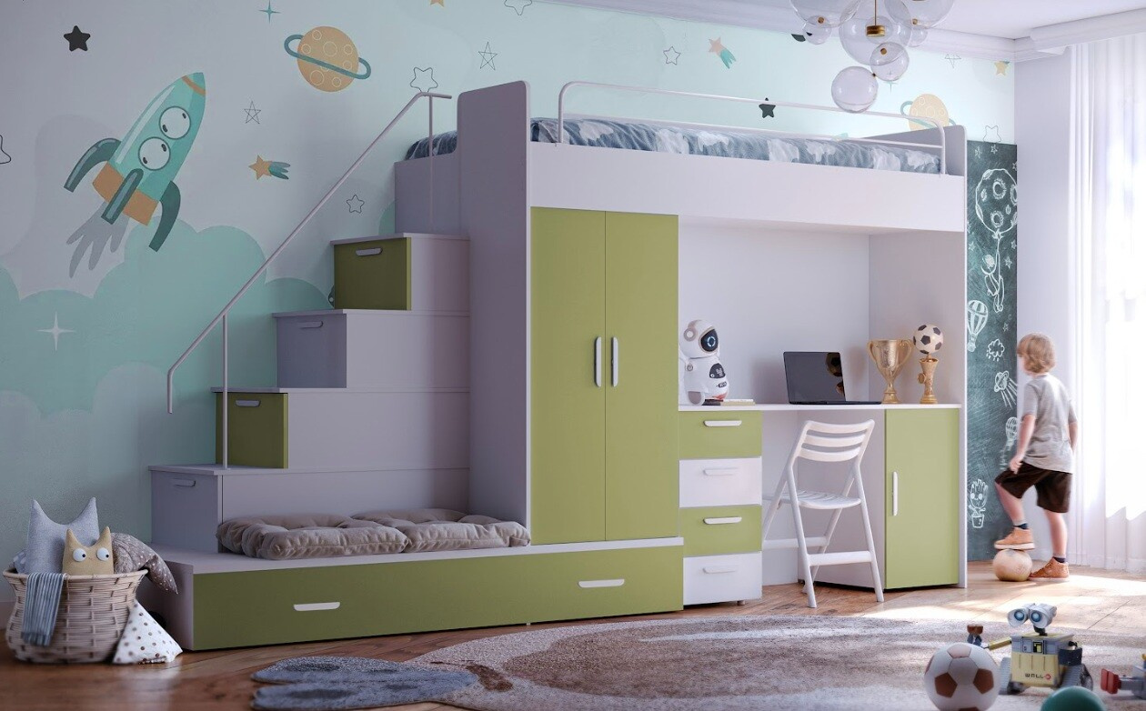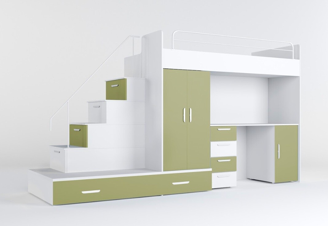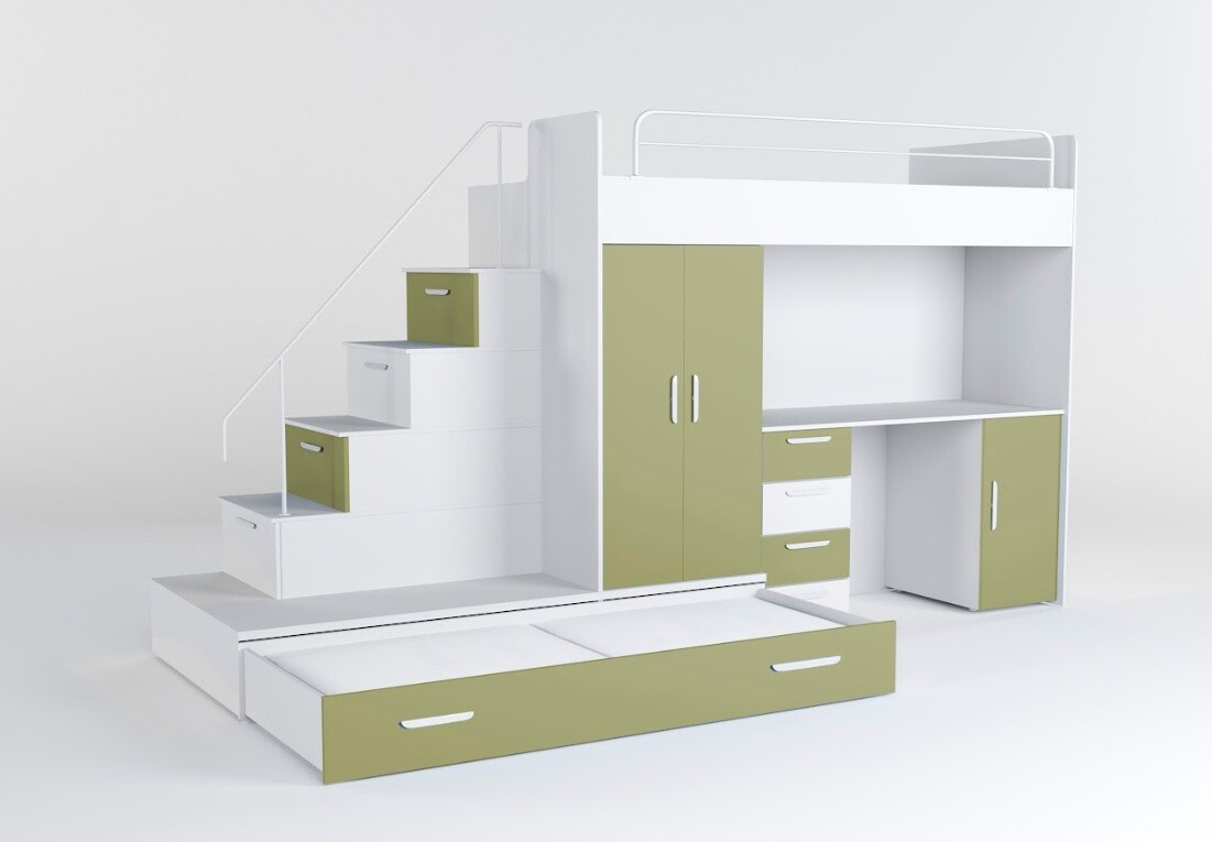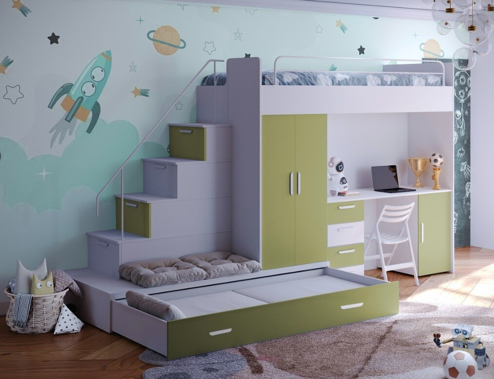 Vytvořte svému dítěti útulný a praktický prostor s naší multifunkční postelí, která nabízí nejen pohodlí, ale také dostatek úložného prostoru a pracovní plochu pro každodenní aktivity.