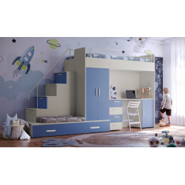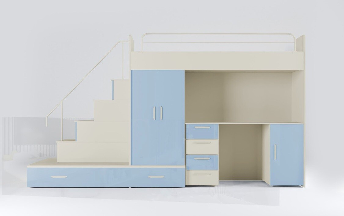 Naše postel se pyšní patentovaným provedením a stabilní konstrukcí, která zaručuje bezpečí pro vaše děti. Schody, které vedou k lůžku, jsou nejen stylové, ale také praktické, protože ukrývají spoustu úložného prostoru. Díky možnosti volby strany schodů (pravá nebo levá) se postel snadno přizpůsobí vašemu interiéru.