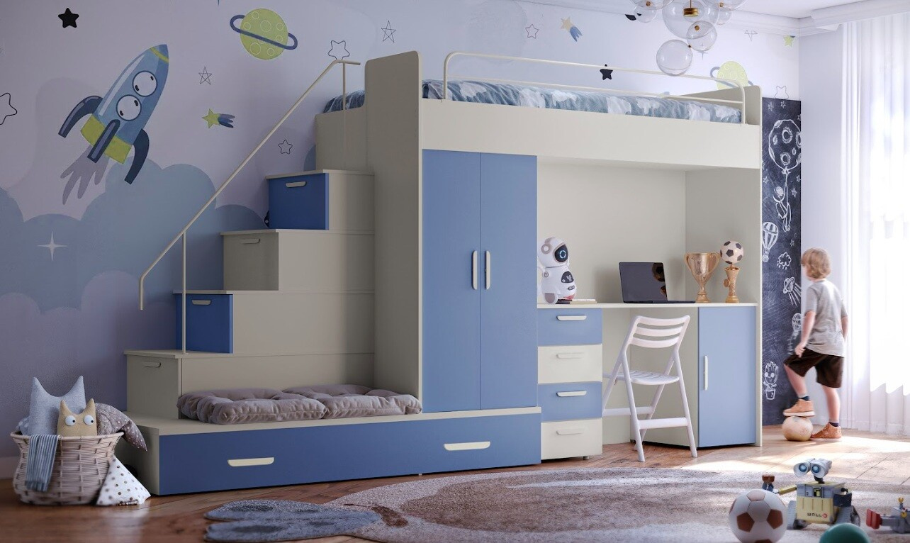 Vytvořte svému dítěti útulný a praktický prostor s naší multifunkční postelí, která nabízí nejen pohodlí, ale také dostatek úložného prostoru a pracovní plochu pro každodenní aktivity.