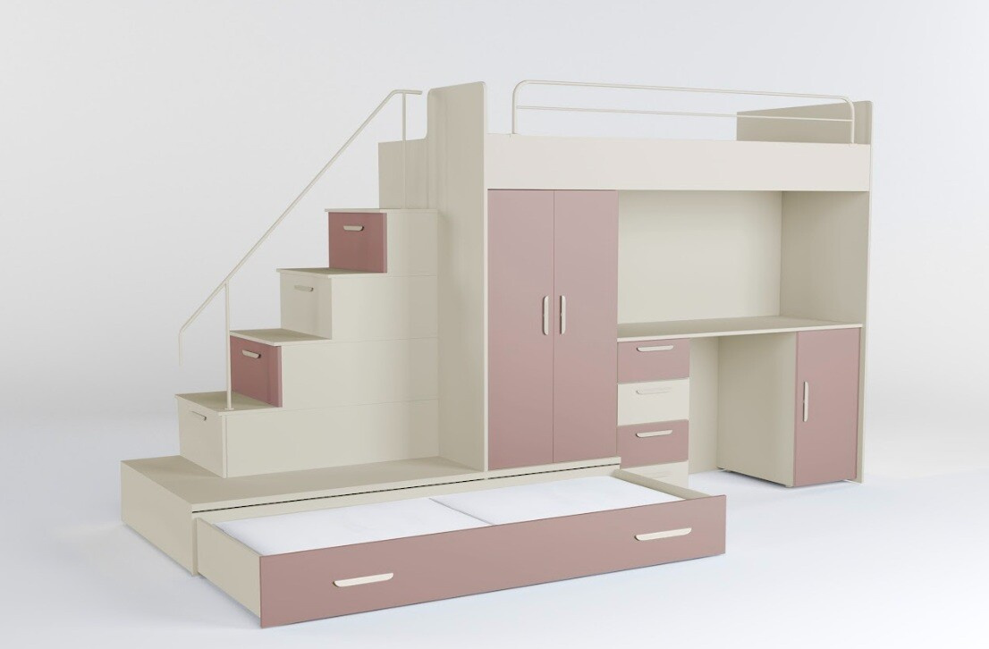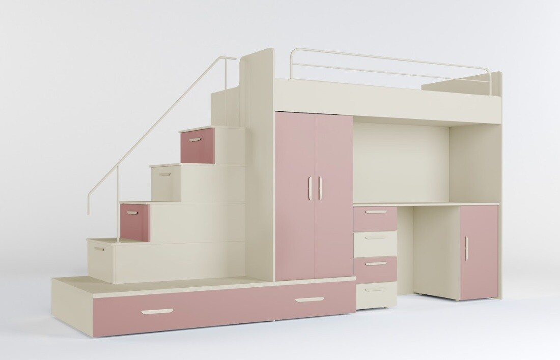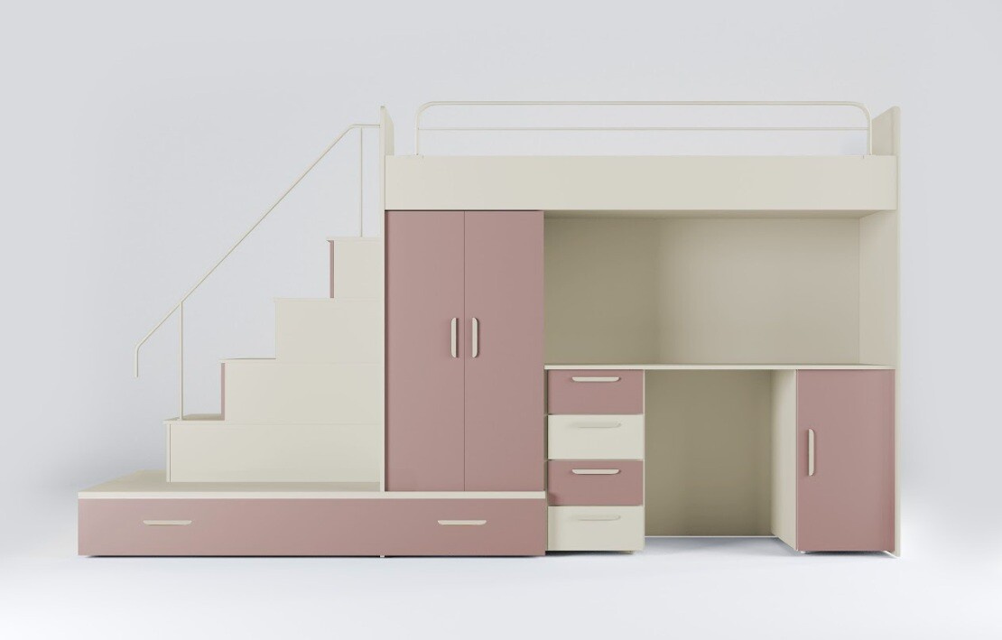 Naše postel se pyšní patentovaným provedením a stabilní konstrukcí, která zaručuje bezpečí pro vaše děti. Schody, které vedou k lůžku, jsou nejen stylové, ale také praktické, protože ukrývají spoustu úložného prostoru. Díky možnosti volby strany schodů (pravá nebo levá) se postel snadno přizpůsobí vašemu interiéru.