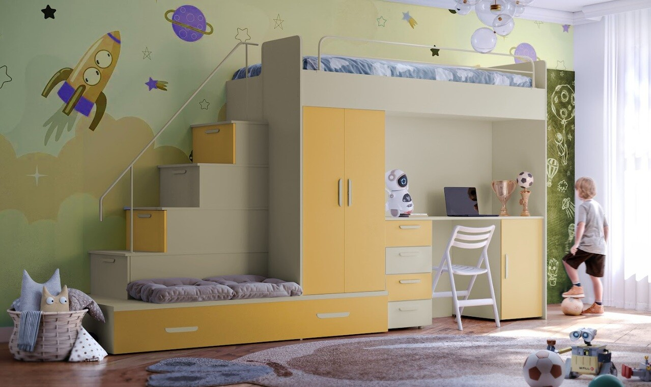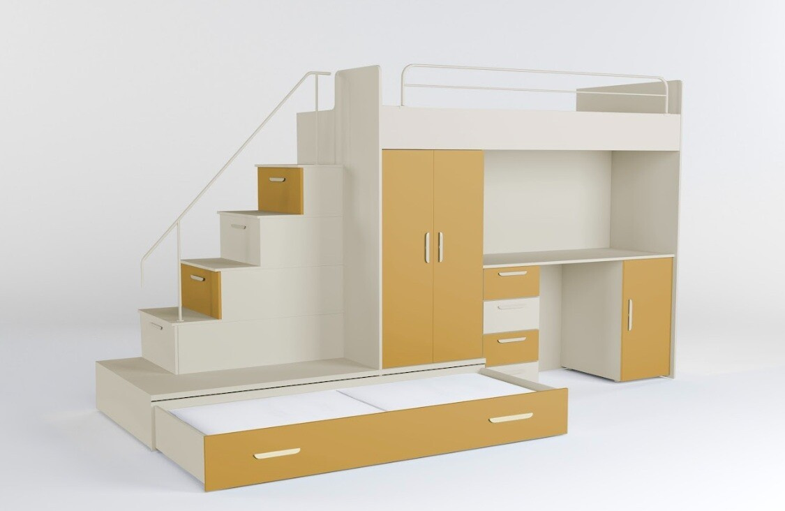 Vytvořte svému dítěti útulný a praktický prostor s naší multifunkční postelí, která nabízí nejen pohodlí, ale také dostatek úložného prostoru a pracovní plochu pro každodenní aktivity.