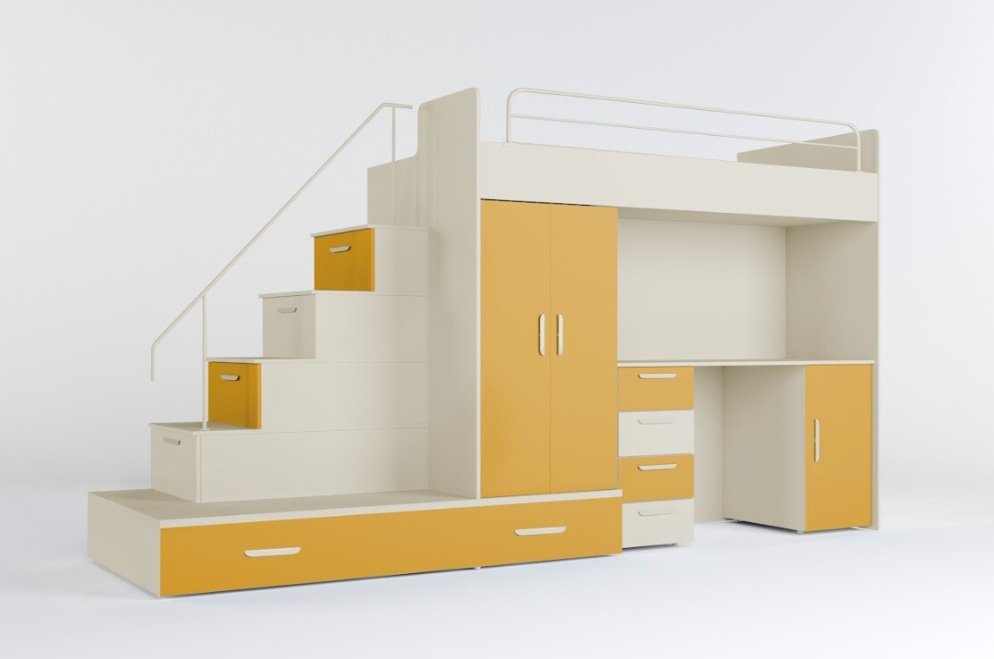 Naše postel se pyšní patentovaným provedením a stabilní konstrukcí, která zaručuje bezpečí pro vaše děti. Schody, které vedou k lůžku, jsou nejen stylové, ale také praktické, protože ukrývají spoustu úložného prostoru. Díky možnosti volby strany schodů (pravá nebo levá) se postel snadno přizpůsobí vašemu interiéru.