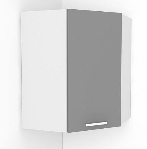 Rohová vrchní kuchyňská skříňka NG je vyrobena z lamina bílé barvy a dvířka jsou ve vysokém lesku v několika trendy odstínech. Vyberte si z naší široké nabídky skříněk a vytvořte si kuchyň dle vlastních představ. Může být rohová, rovná, krátká i dlouhá. Fantazii se meze nekladou. V doplňkových fotografiích najdete pro inspiraci fotky kuchyní, které jsou z těchto skříněk sestaveny. Skříňka je dodávaná v demontu. Součástí je montážní plánek včetně všech potřebných spojovacích materiálů. Úvodní fotografie je ilustrační. Upozornění: aby horní rohová skříňka rozměrově korespondovala z dolní rohovou skříňkou, je nutno z obou stran dokoupit skříňku G301D - viz foto rohové kuchně v doplňkových fotografiích. Správný odstín šedé barvy je zobrazen v doplňkové fotografii.
