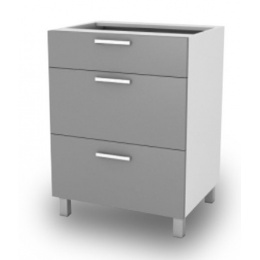 Spodní zásuvková kuchyňská skříňka SZ40 3SZ je vyrobena z lamina bílé barvy a čílka zásuvek jsou ve vysokém lesku v několika trendy odstínech. Skříňka je na nožkách a má 3 praktické zásuvky, které nabízí dostatek úložného prostoru. Díky nožkám je prostor pod skříňkou lépe přístupný při úklidu. Vyberte si z naší široké nabídky skříněk a vytvořte si kuchyň dle vlastních představ. Může být rohová, rovná, krátká i dlouhá. Fantazii se meze nekladou. V doplňkových fotografiích najdete pro inspiraci fotky kuchyní, které jsou z těchto skříněk sestaveny. Skříňka je dodávaná v demontu. Součástí je montážní plánek včetně všech potřebných spojovacích materiálů. Úvodní fotografie je ilustrační. Skříňka bude dodána bez pracovní desky. Správný odstín šedé barvy je zobrazen v doplňkové fotografii.