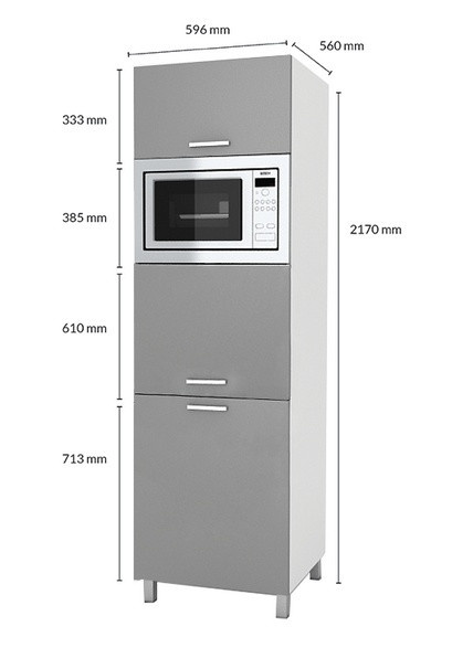 Vysoká kuchyňská skříňka - sloupek SP je vyrobena z lamina bílé barvy a dvířka jsou ve vysokém lesku v několika trendy odstínech. Tato skříňka je určena pro vestavnou troubu a mikrovlnku. Zbytek prostoru ve skříňce se ideálně hodí jako potravinová skříňka na trvanlivé potraviny jako jsou mouka, cukr, těstoviny, konzervy...atd. Vyberte si z naší široké nabídky skříněk a vytvořte si kuchyň dle vlastních představ. Může být rohová, rovná, krátká i dlouhá. Fantazii se meze nekladou. V doplňkových fotografiích najdete pro inspiraci fotky kuchyní, které jsou z těchto skříněk sestaveny. Skříňka je dodávaná v demontu. Součástí je montážní plánek včetně všech potřebných spojovacích materiálů. Úvodní fotografie je ilustrační. Vyobrazené spotřebiče nejsou v ceně skříňky. Správný odstín šedé barvy je zobrazen v doplňkové fotografii.