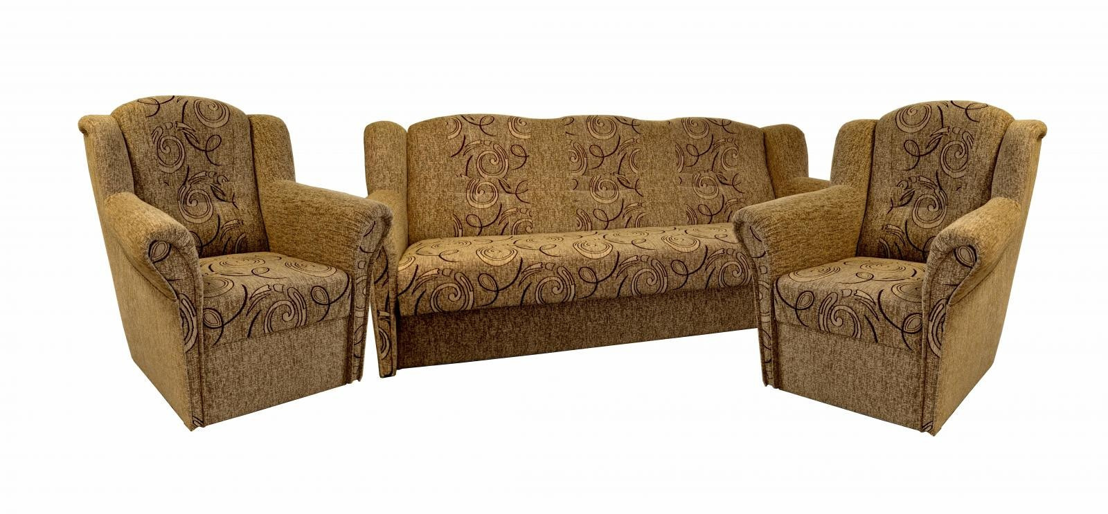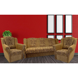 Agata je stále velmi oblíbeným klasickým modelem sedací soupravy v provedení 3F+1+1. Je velmi pohodlná a zároveň praktická. Sedací souprava je rozkládací a samozřejmostí je i úložný prostor. Jednoduchým rozkladem pomocí systému "klik klak" vznikne lůžko k příležitostnému přespání Vaší návštěvy. Sedací souprava je potažena kvalitní látkou a nabízíme ji v několika barvách, ze kterých si určitě vyberete tu nejvhodnější pro Váš obývací pokoj. Výpň sedáků tvoří pružiny v kombinaci s kvalitní PUR pěnou. Tato kombinace zajistí velmi pohodlné sezení. Cena sedací soupravy je uvedena za rozkládací trojsed a dvě křesla. Úvodní fotografie je ilustrační. Sedací souprava bude dodána ve žluto-oranžové barvě. Vzorek látky je vyobrazený v doplňkových fotografiích.