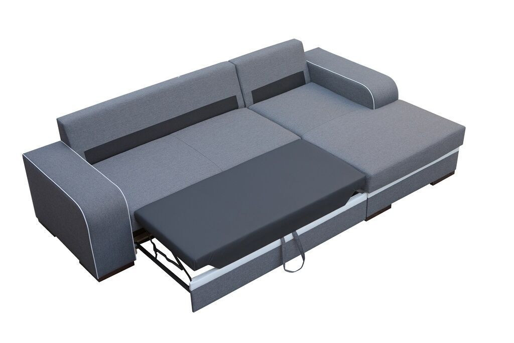 Elegantní rohová sedací souprava Funny je vhodná do každého interiéru. Umístit ji můžete ke stěně, nebo do prostoru. Sedací souprava je rozkládací a má také praktický úložný prostor. Jednoduchým rozložením vznikne dostatečně velké lůžko vhodné k příležitostnému spaní. Výplň sedáku tvoří pružiny faliste s kvalitní PUR pěnou. Tato kombinace zajistí pohodlné sezení. Sedací souprava je potažena velmi oblíbenou kvalitní látkou Inari. Zajímavým prvkem je proužek v kontrastní barvě, lemující sedací soupravu i polštáře. Tuto sedačku nabízíme v několika barevných variantách. V ceně sedací soupravy jsou 3 velké opěrné polštáře. Ostatní vyobrazené dekorace nejsou v ceně.