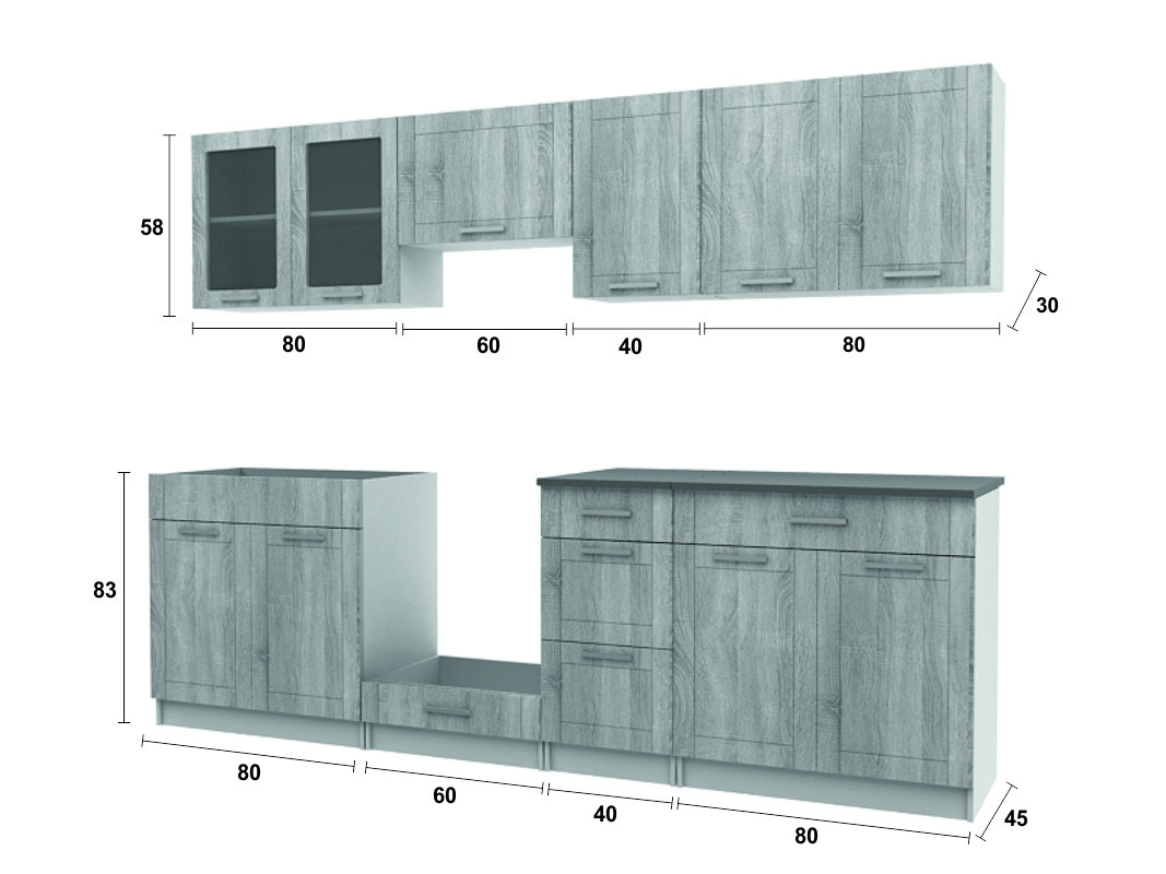 Kuchyňská linka Moneta 260 dub sonoma/boloniaKuchyňská linka Moneta 260 dub sonoma/bolonia