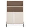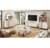 Vitrína **Nexo** je elegantní a funkční nábytek, který se skvěle hodí do obývacího pokoje, jídelny nebo pracovny. Její moderní forma a jemné dekorativní detaily zajišťují, že se dokonale hodí do současných interiérů, přidávajíc jim styl a lehkost. Model je dostupný ve dvou módních barevných variantách: **Artisan**, inspirovaný přírodní strukturou dřeva, a **Kašmír**, který přináší do interiéru eleganci a moderní, tlumenou barevnost. Charakteristickým prvkem kolekce jsou černé, dekorativní lišty na čelní straně a **kovové nohy**, které zdůrazňují moderní charakter nábytku a dodávají mu vizuální lehkost.