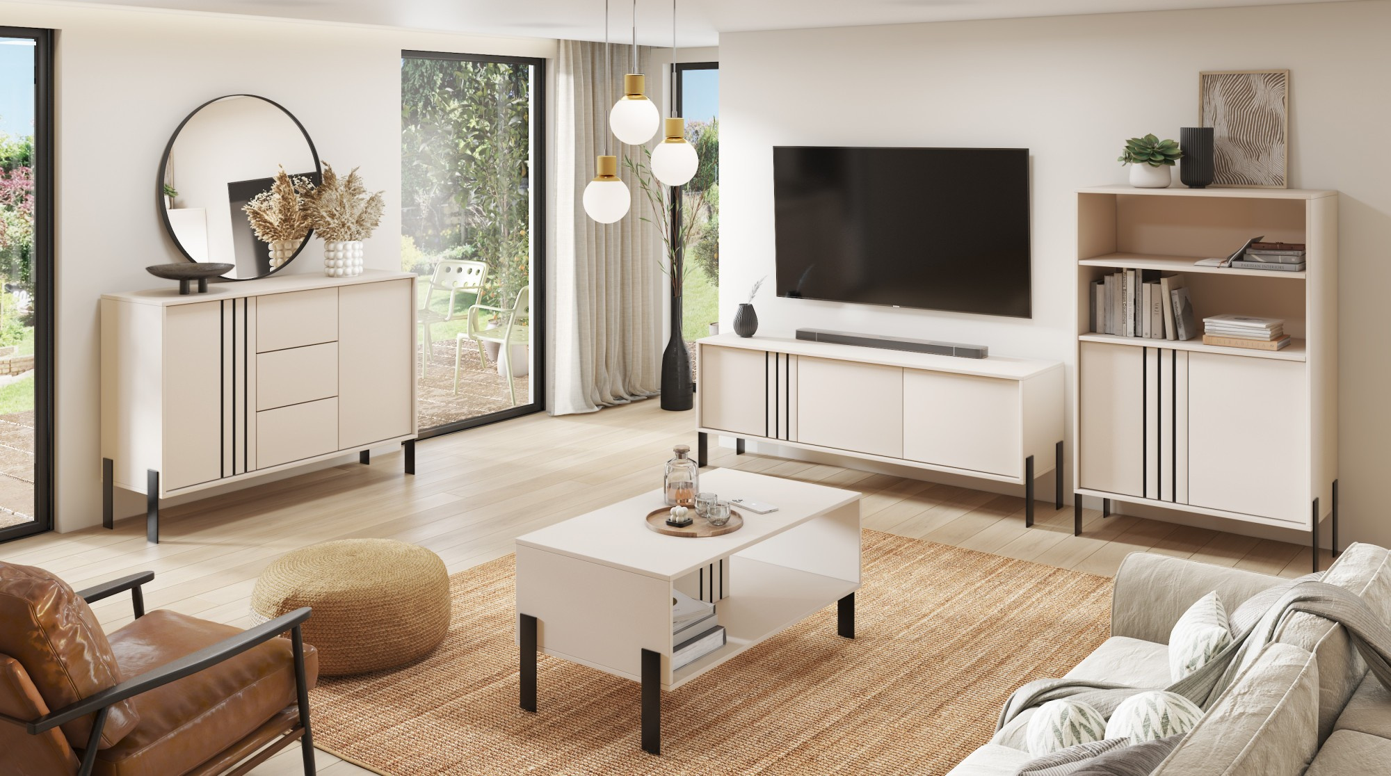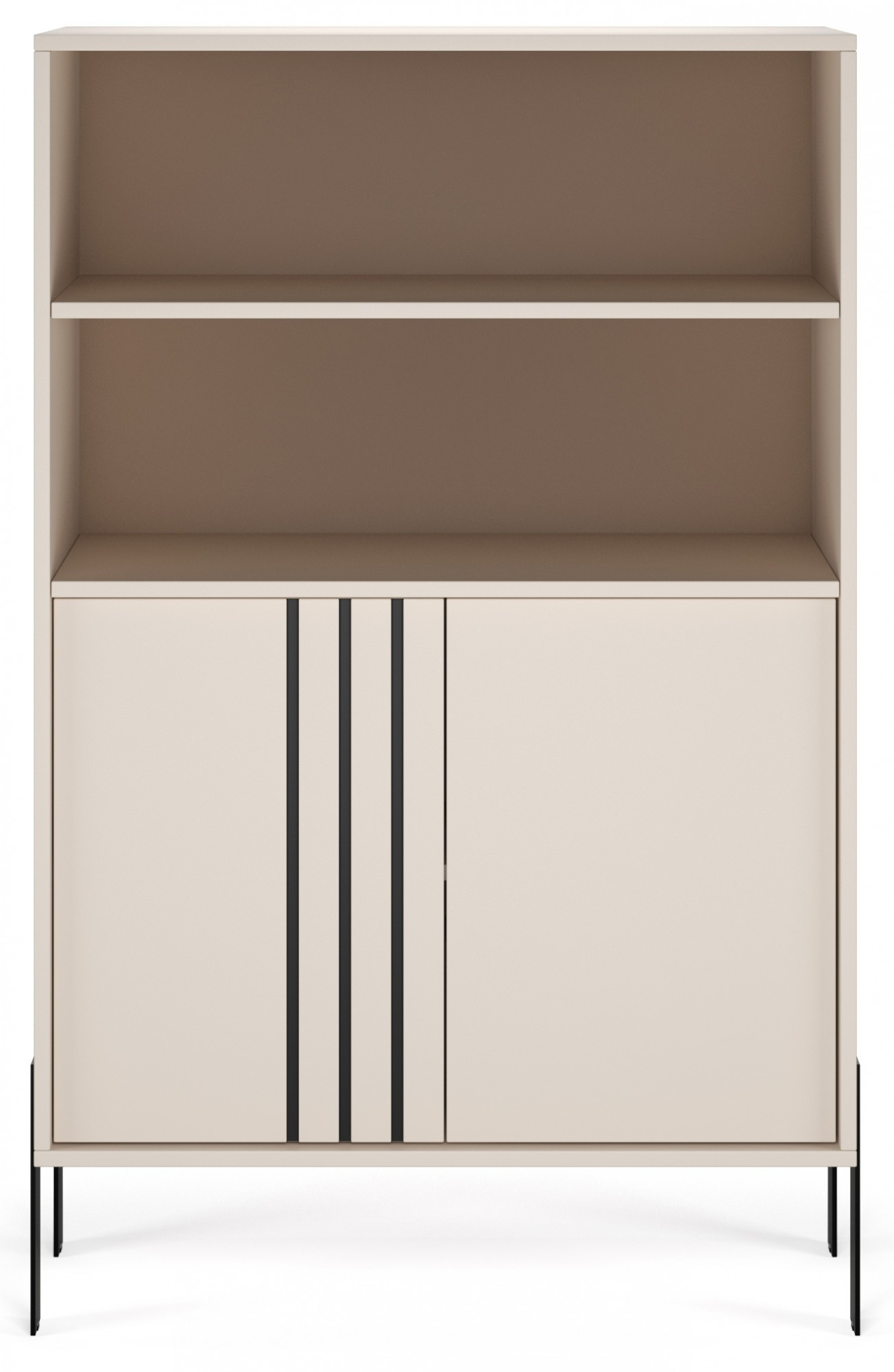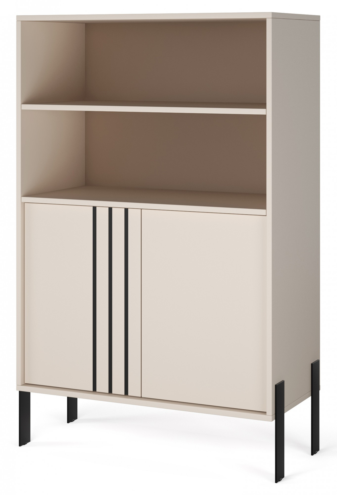 Vitrína **Nexo** je elegantní a funkční nábytek, který se skvěle hodí do obývacího pokoje, jídelny nebo pracovny. Její moderní forma a jemné dekorativní detaily zajišťují, že se dokonale hodí do současných interiérů, přidávajíc jim styl a lehkost. Model je dostupný ve dvou módních barevných variantách: **Artisan**, inspirovaný přírodní strukturou dřeva, a **Kašmír**, který přináší do interiéru eleganci a moderní, tlumenou barevnost. Charakteristickým prvkem kolekce jsou černé, dekorativní lišty na čelní straně a **kovové nohy**, které zdůrazňují moderní charakter nábytku a dodávají mu vizuální lehkost.