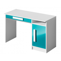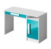 GOLIÁŠ 9- psací stůl (GULIVER 9)-korpus bílá/dvířka tyrkysová lesk/úchyt bílá (DO) (Z)