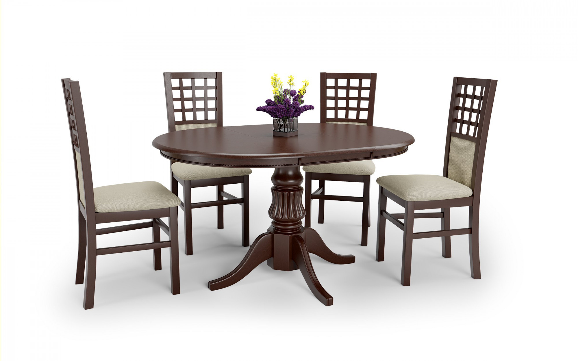 rozkládací stůl, rozměry: 90÷124/90/75 cm, materiál: horní deska - MDF deska + přírodní dýha, nohy - masivní dřevo, barva: tmavý ořech