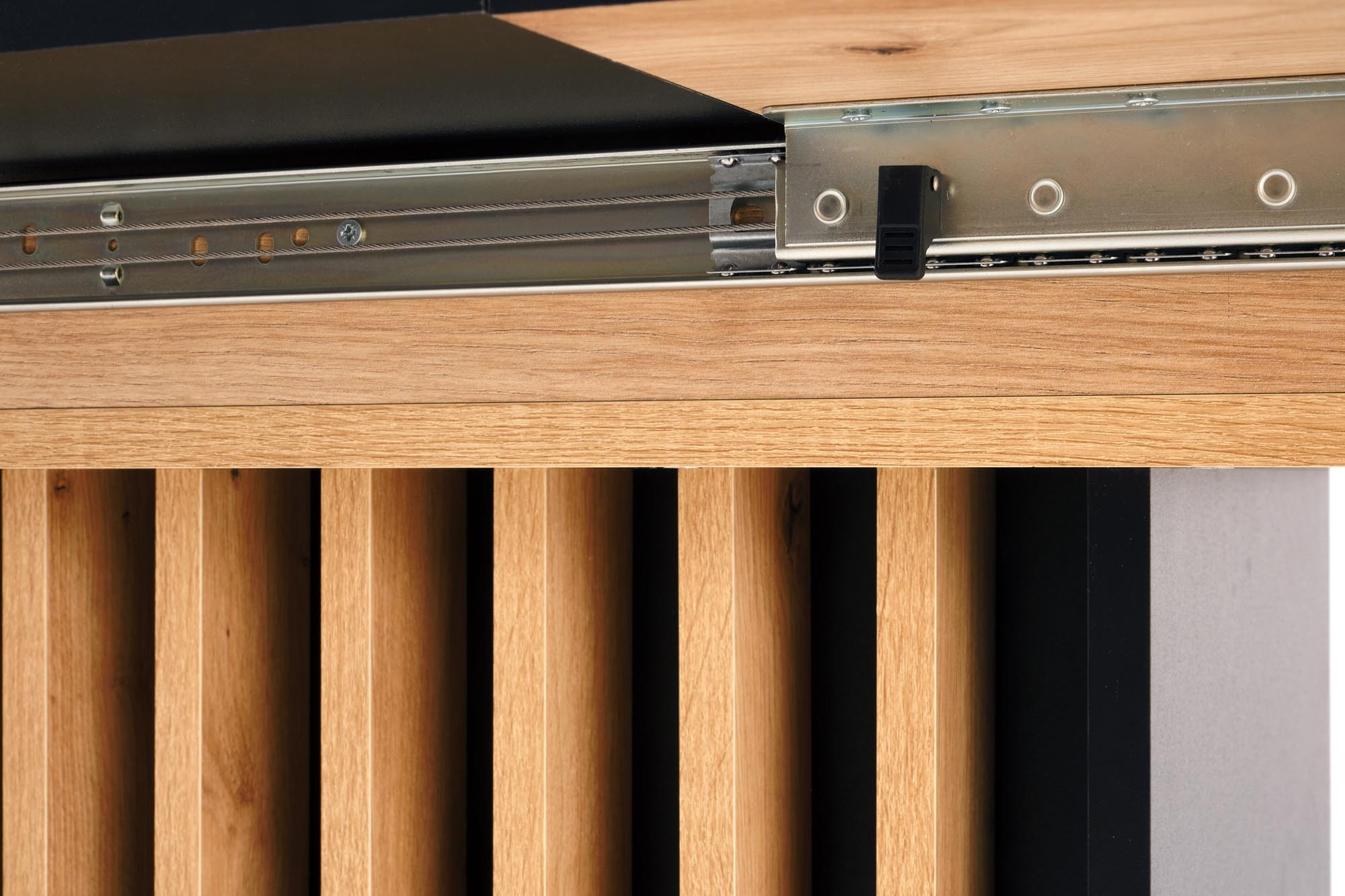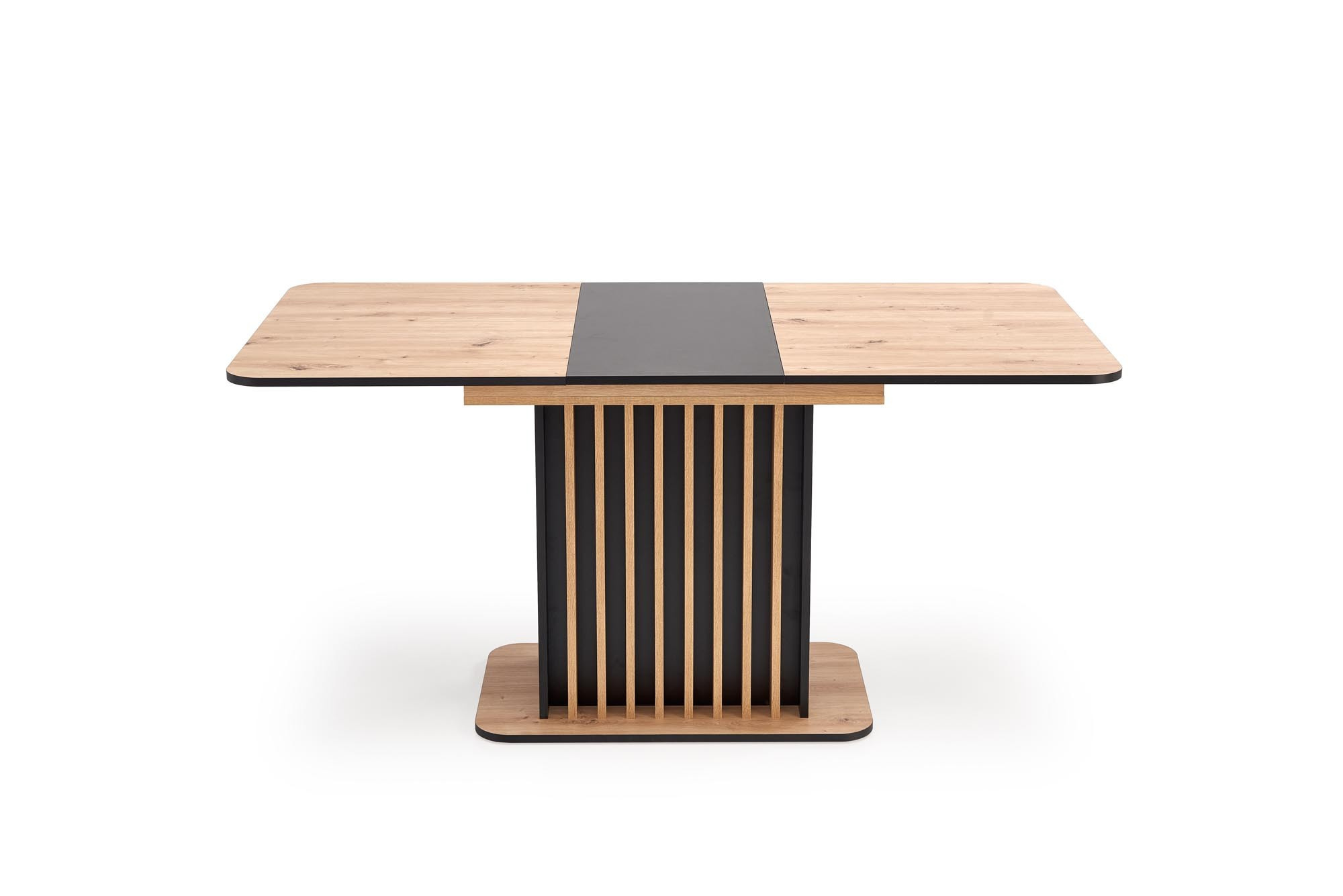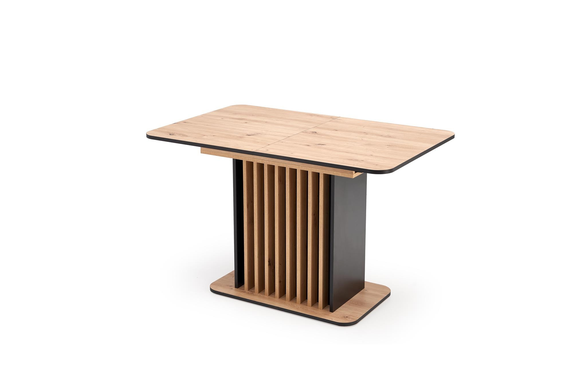 rozkládací stůl, materiál: laminovaná nábytková deska, barva: deska - dub artisan / černá, nohy - dub artisan / černá