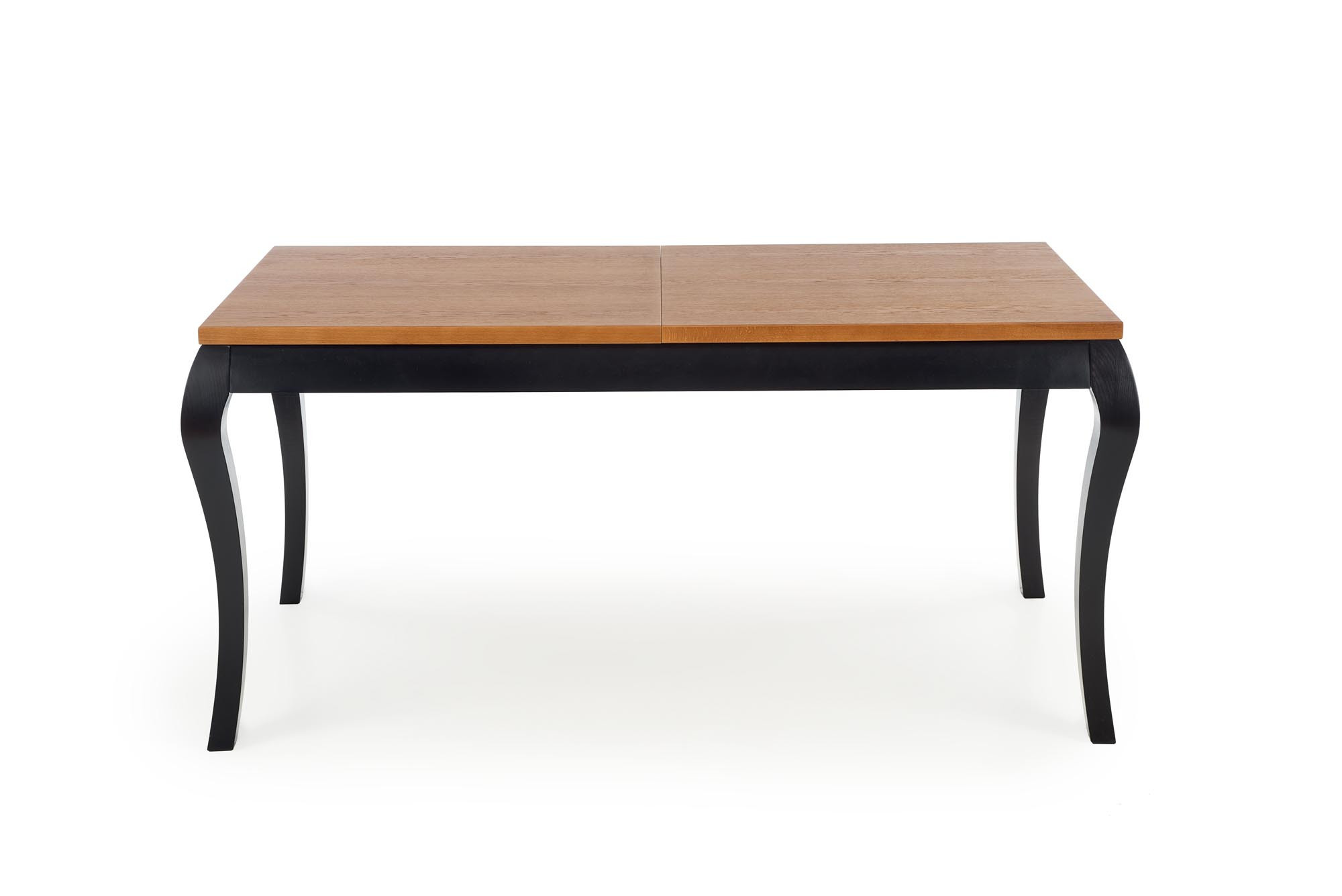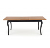 rozkládací stůl, rozměry: 160-240/90/76 cm; materiál: deska stolu - dýhovaná deska s okrajem z masivního dřeva, nohy - masivní dřevo - buk, barva: deska stolu - tmavý dub, nohy - černá Poznámka: olejovaná deska stolu, vyžaduje zvláštní údržbu, podrobnosti v návodu.