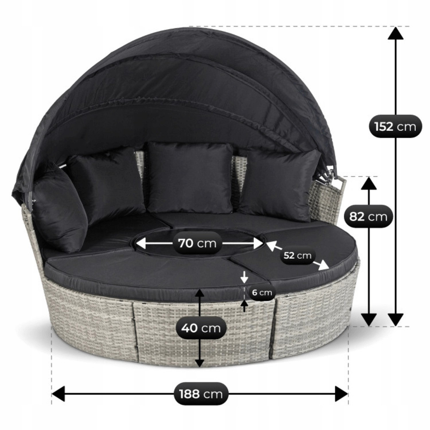 | Materiał poduszki | voděodolná tkanina |