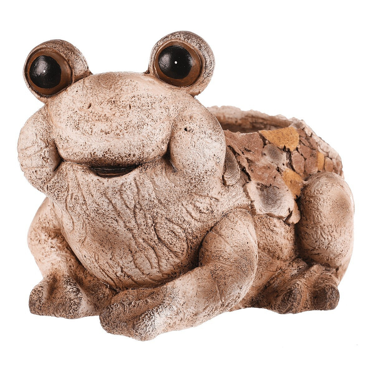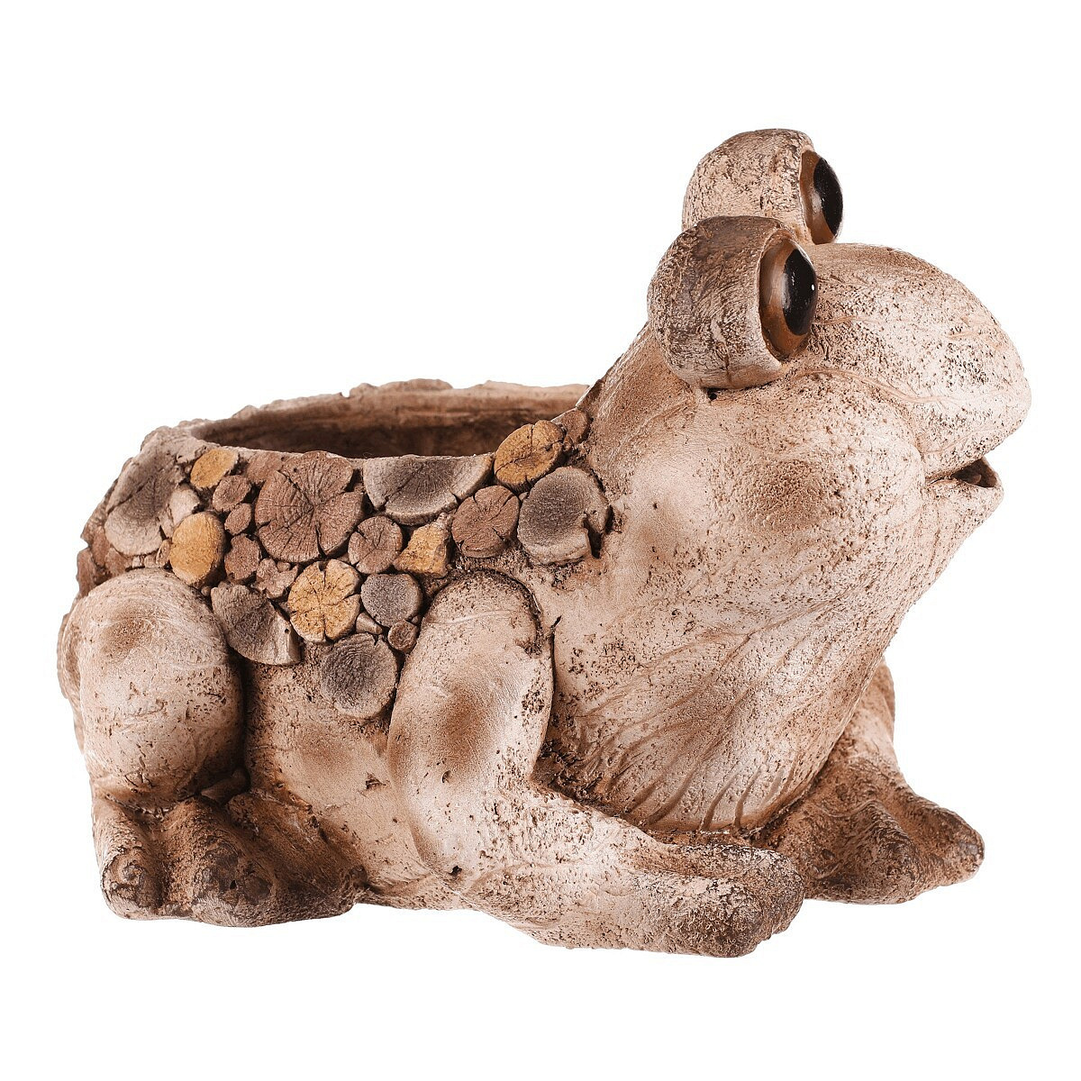 Dekorativní obal na květiny ve tvaru žáby je vyroben z magnesia s povrchem připomínajícím dřevo, který dodává přírodní vzhled. Jeho detailně propracované tělo a výrazné oči vytvářejí zajímavý dekorativní prvek vhodný do zahrady i na terasu. Obal je stabilní a navržený tak, aby bezpečně pojmul květináč či rostlinu. Hnědá barevná varianta ladí s přírodními odstíny exteriéru a podtrhuje rustikální charakter dekorace. Díky odolnému materiálu se snadno udržuje a je vhodný pro venkovní použití.