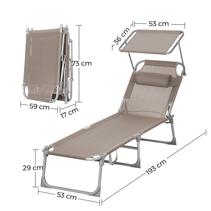 Zahradní lehátko v elegantním béžovém odstínu je ideální volbou pro pohodlný odpočinek na terase, u bazénu i na pláži. Stabilní kovová konstrukce v kombinaci s odolnou syntetickou textilií zajišťuje pevnost, dlouhou životnost a snadnou údržbu. Polohovatelná opěrka zad umožňuje nastavit optimální komfort při slunění i relaxaci s knihou. Praktická stříška chrání před přímým sluncem a zvyšuje pohodlí během horkých dnů. Tento produkt značky Autronic představuje stylový a funkční zahradní nábytek pro moderní exteriér.