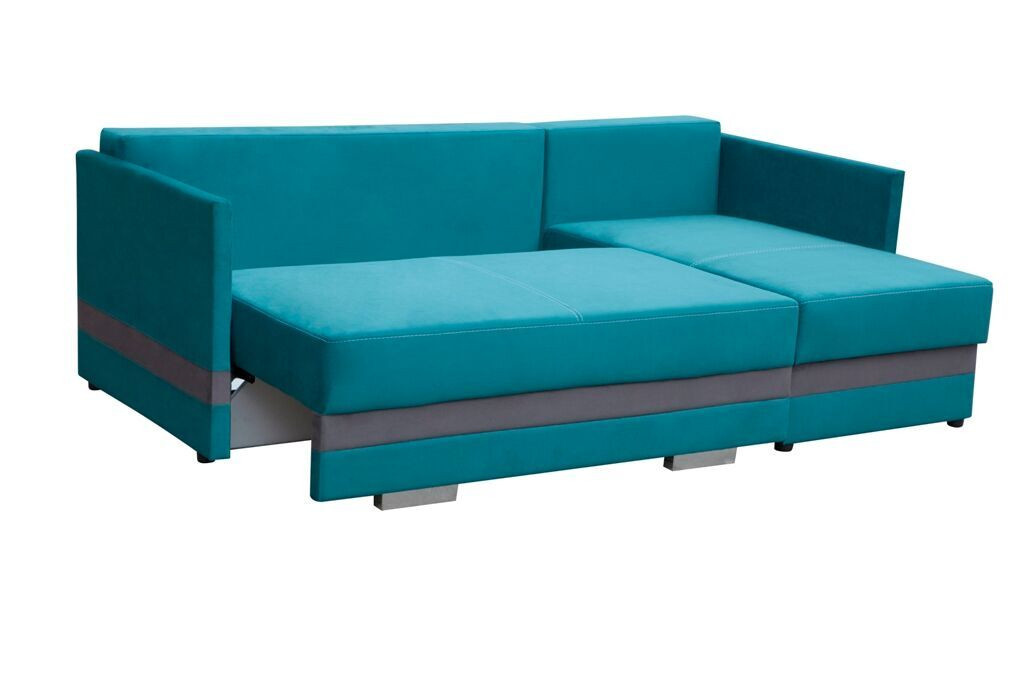 Elegantní rohová sedací souprava Berry je rozkládací a má také praktický úložný prostor. Díky svým rozměrům je vhodná i do menších pokojů. Jednoduchým rozložením pomocí automatu, vznikne dostatečně velké lůžko vhodné k příležitostnému spaní. Výplň sedáku tvoří kombinace pružin bonell a faliste s kvalitní PUR pěnou. Tato kombinace zajistí velmi pohodlné sezení. Sedací souprava je potažena kvalitní látkou v kombinaci 2 barev, a to v několika odstínech. V ceně sedací soupravy jsou 3 velké opěrné polštáře. Ostatní vyobrazené dekorace nejsou v ceně.