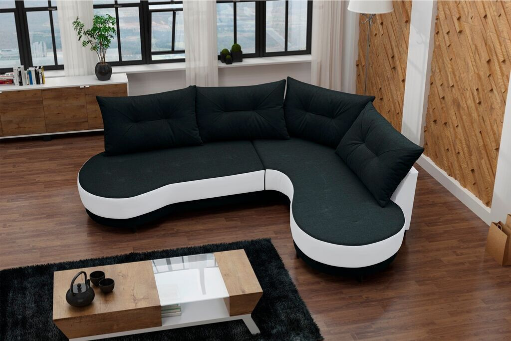 Rohová sedací souprava Abbey P černá/bílá