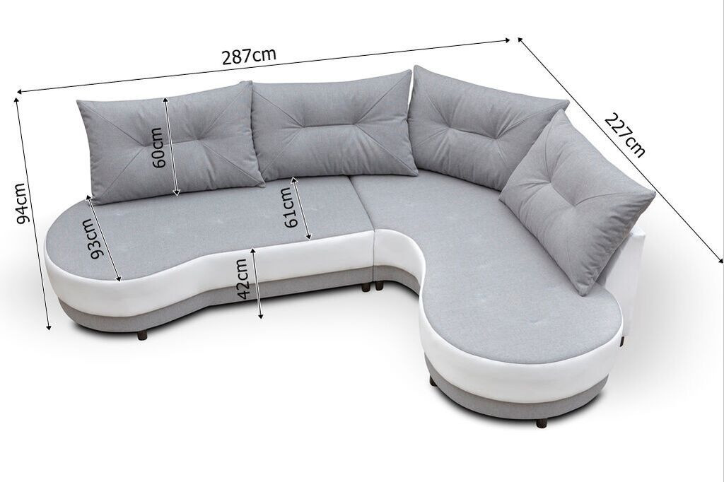 Rohová sedací souprava Abbey má velmi neobvyklý zaoblený tvar, což ji výrazně odlišuje od klasických a moderních sedaček. Je velmi elegantní a pohodlná a bude ozdobou každého interiéru. Sedací souprava je potažena oblíbenou kvalitní látkou Inari v kombinaci s EKO kůží, a to v několika odstínech. V ceně sedací soupravy jsou 4 velké opěrné polštáře. Ostatní vyobrazené dekorace nejsou v ceně.