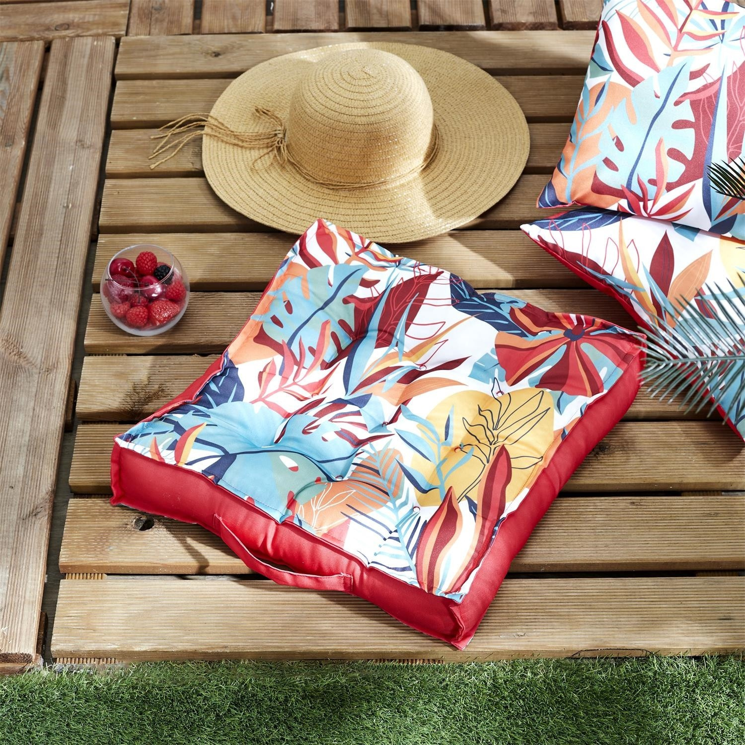 Zahradní poduška Exotic paradise doplní letní aranžmá našeho balkonu nebo terasy. Silný a měkký polštář má snímatelný, hydrofobní potah, který ochrání vnitřek polštáře před vlhkostí. Potah lze prát ručně v nízkých teplotách a lze žehlit (Max. 110 stupňů). Gramáž výplně polštáře 150g/m2 zajišťuje, že je měkký a pohodlný. Polštář lze používat na zahradním nábytku i jako sedák na hraní na podlaze.