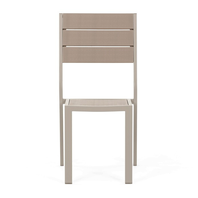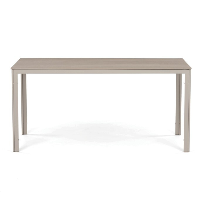 Zahradní sestava AZS-B1656 CRM nabízí praktické a pevné řešení pro venkovní posezení. Stůl o rozměrech 156 × 78 cm má desku z polywoodu, materiálu odolného vůči povětrnostním vlivům a snadno udržovatelného, který věrně napodobuje vzhled dřeva. Rám stolu i židlí je vyroben z kovu v béžovém odstínu s práškovou povrchovou úpravou, která zajišťuje stabilitu a dlouhou životnost. Sada obsahuje šest židlí, z nichž dvě mají opěrky a područky pro pohodlnější sezení, zatímco ostatní jsou bez područek, což umožňuje variabilní uspořádání. Design s vodorovnými lamelami na sedácích a opěradlech podtrhuje moderní a zároveň nadčasový vzhled celé sestavy.