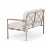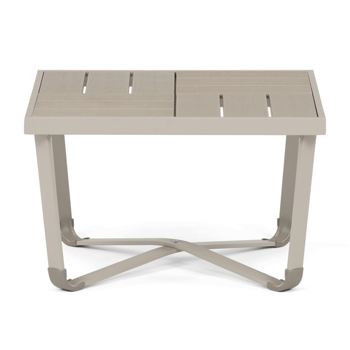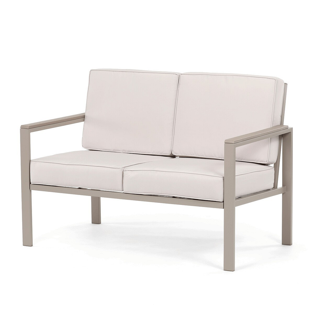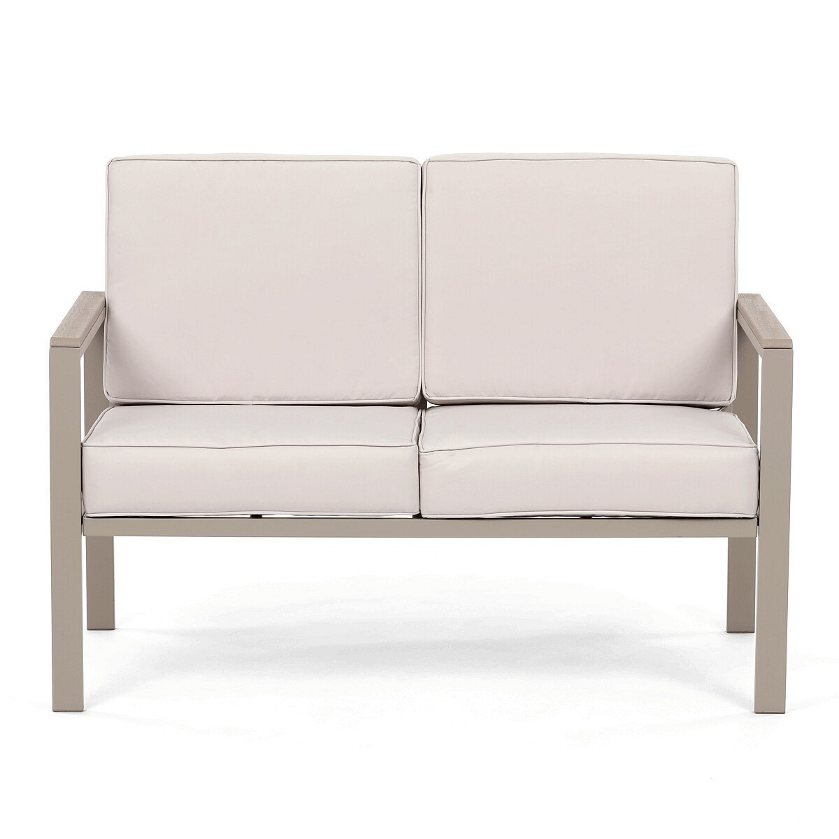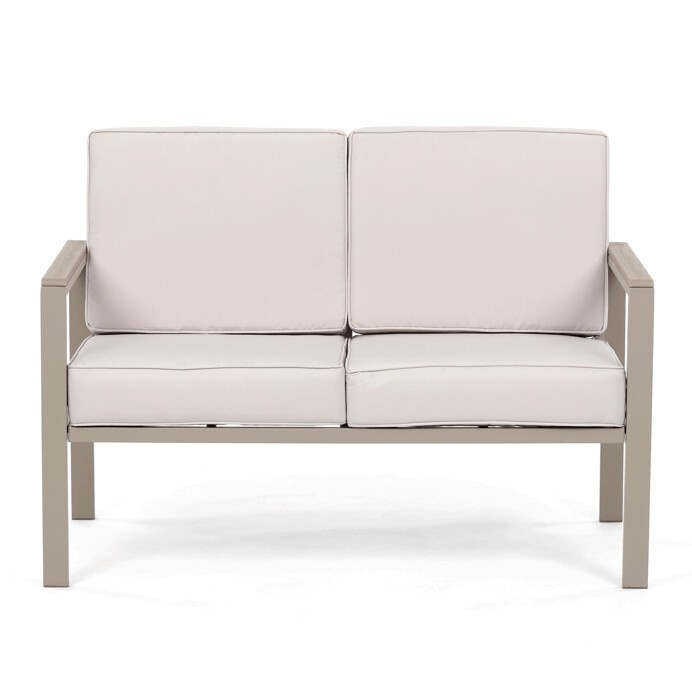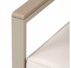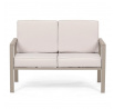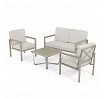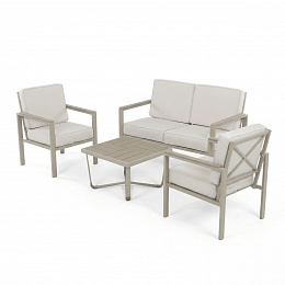 Zahradní sestava v béžovém provedení kombinuje pevný kovový rám s pohodlnými sedáky potaženými odolnou látkou v béžové barvě. Desky stolku i područky jsou vyrobeny z polywoodu, materiálu známého svou vysokou odolností vůči povětrnostním vlivům a snadnou údržbou. Konstrukce sestavy je navržena tak, aby poskytovala stabilitu a komfort při venkovním posezení, přičemž polstrování zajišťuje pohodlné sezení i během delšího užívání. Součástí jsou dvě samostatné křesla a dvoumístná pohovka, které společně s praktickým stolkem vytvářejí ideální prostor pro relaxaci na zahradě či terase. Celkový design je jednoduchý a moderní, vhodný pro různé venkovní prostory.