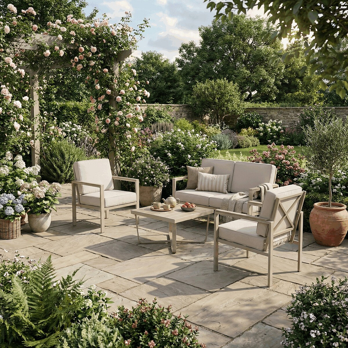 Zahradní sestava, kov, béžová, AZS-B1405 CRM